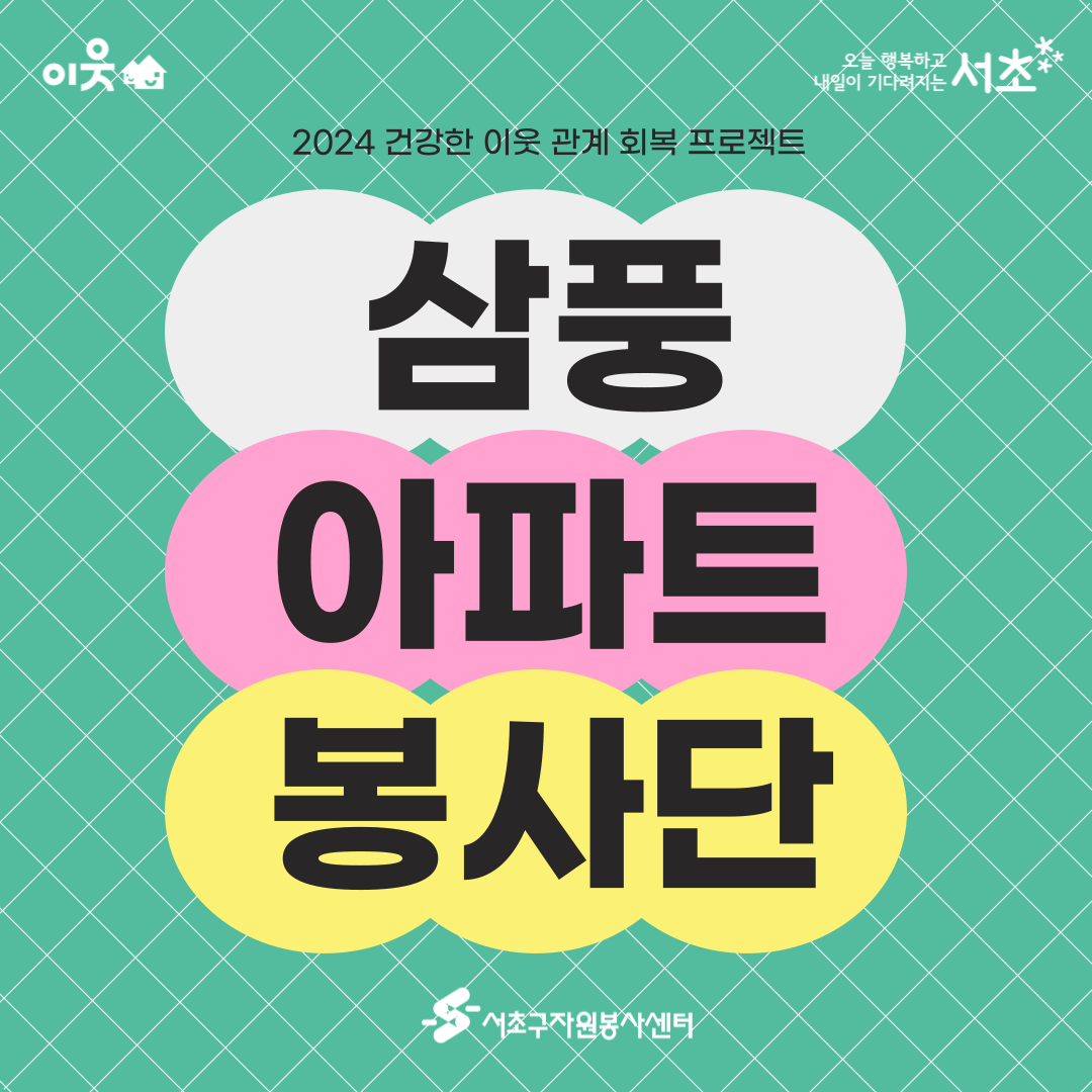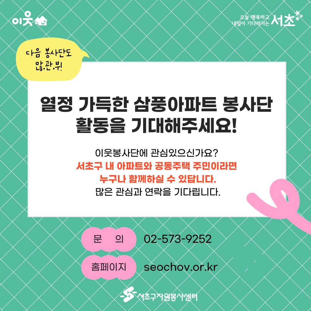 서초구 내 아파트와 공동주택 주민이라면 누구나 함께하실 수 있답니다.