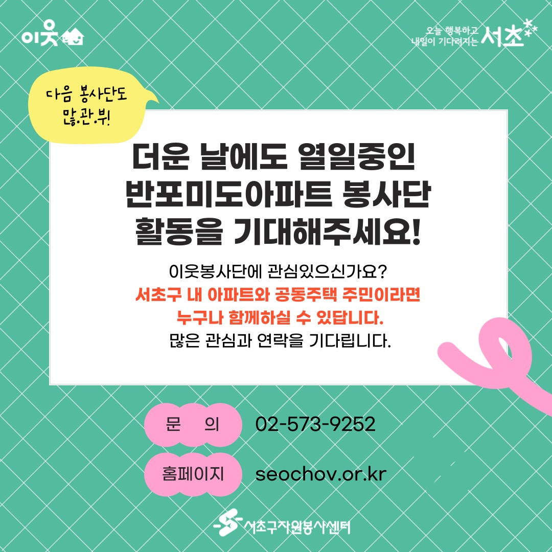 더운 날에도 열일중인 반포미도아파트 봉사단 활동을 기대해주세요!