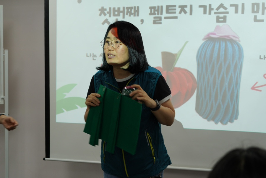 서초 2동 캠프의 김미진 총무님께서 펠트지 가습기 만들기의 방법을 설명해 주었답니다:)