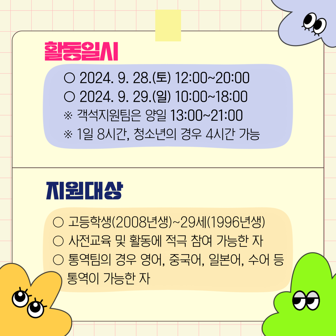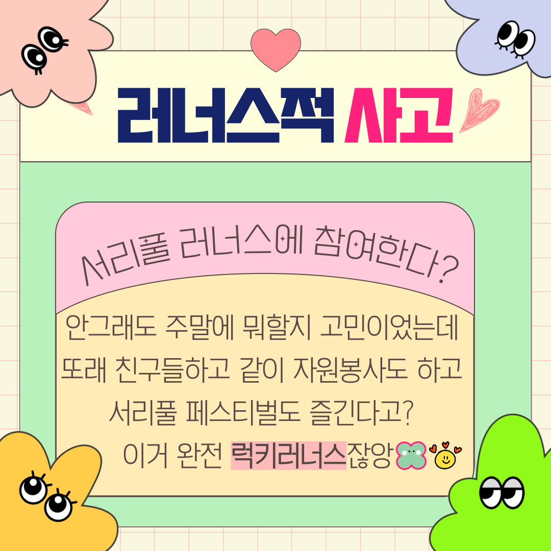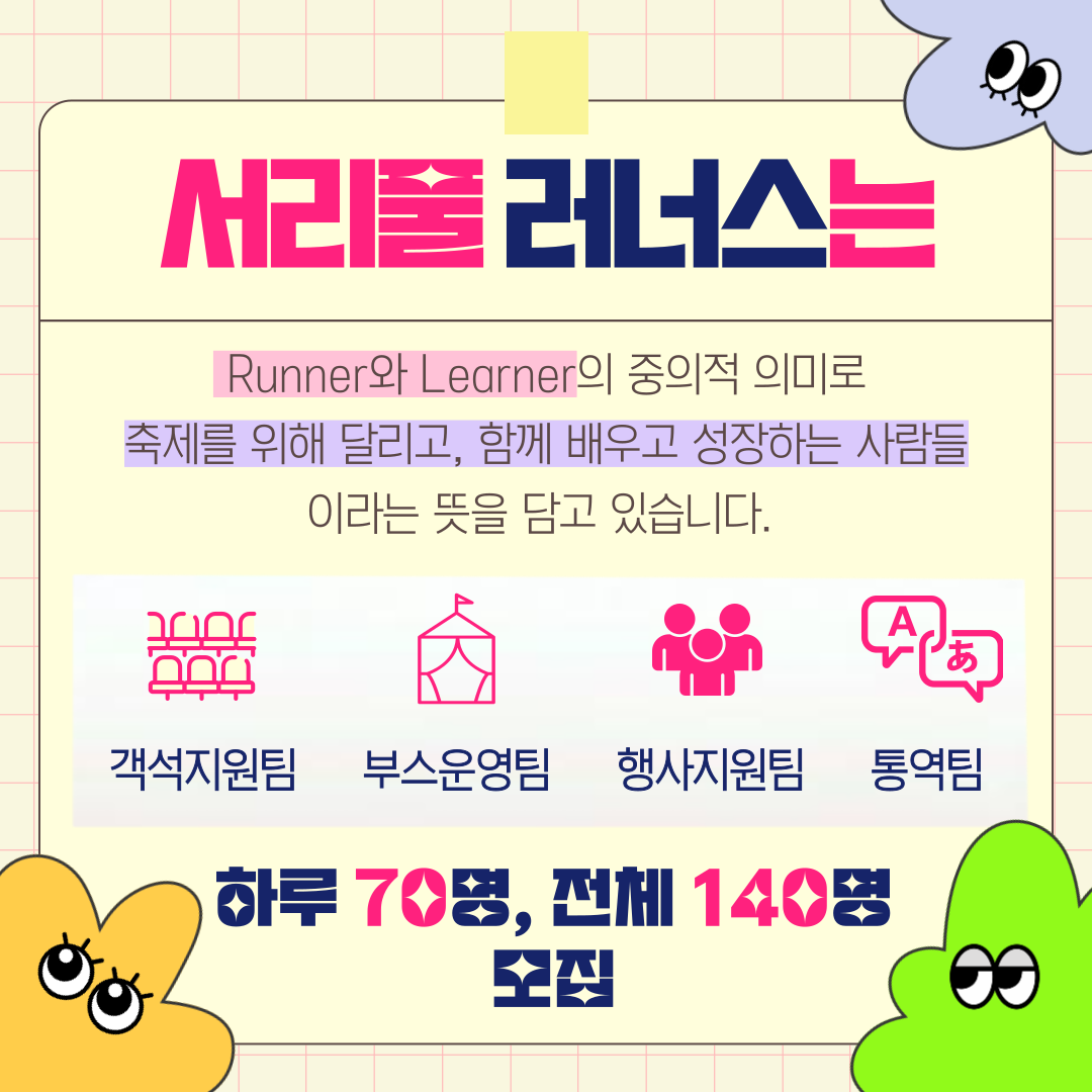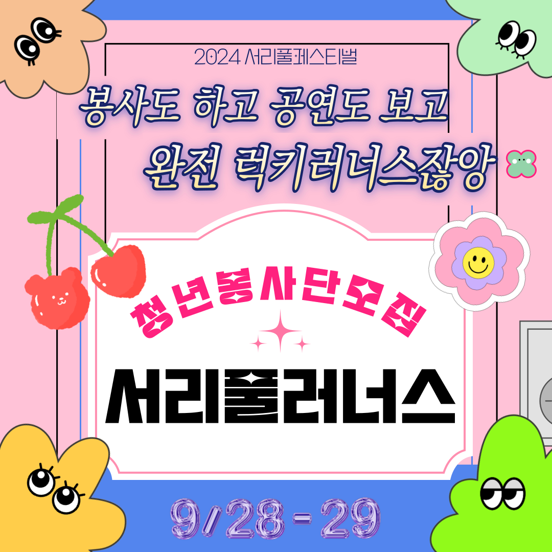 | [마감]서리풀페스티벌 청년봉사단 '서리풀러너스' 모집마감 (0) | 2024.08.22 |