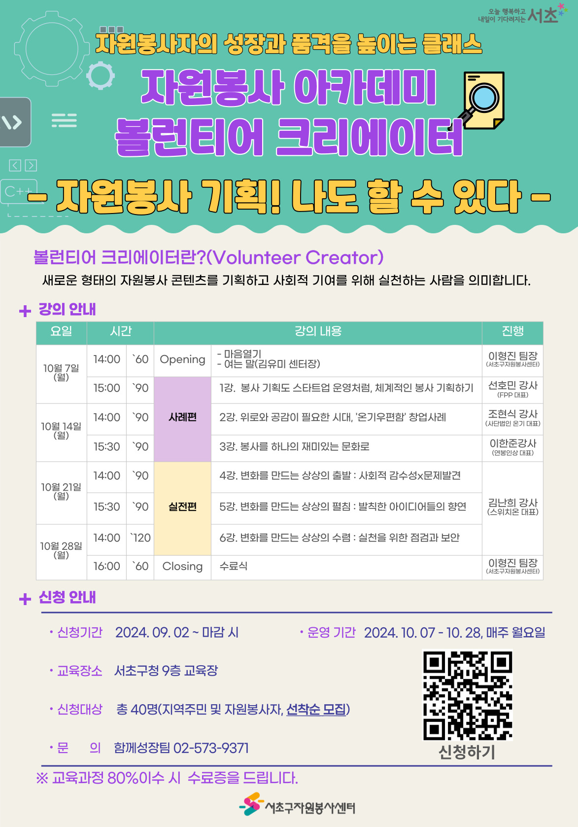 서초구자원봉사센터에서 자원봉사 현장의 깊이를 더하고, 자원봉사자의 성장과 품격을 높이는 클래스!