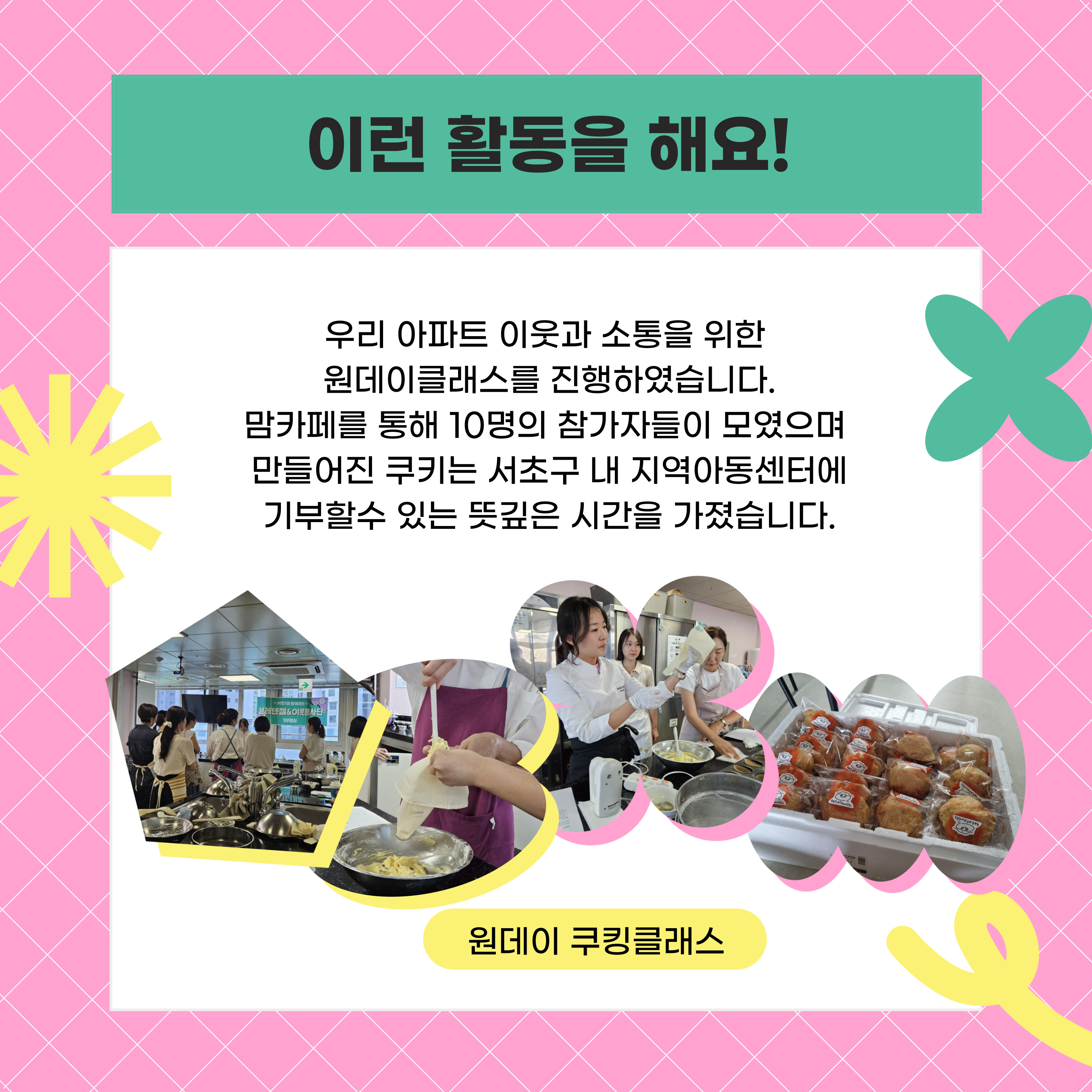 각 아파트별로 필요한 활동을 기획 및 진행하고 있는데요,