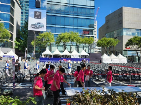 부스운영, 객석지원, 통역, 행사지원 네 팀으로 이루어졌습니다.