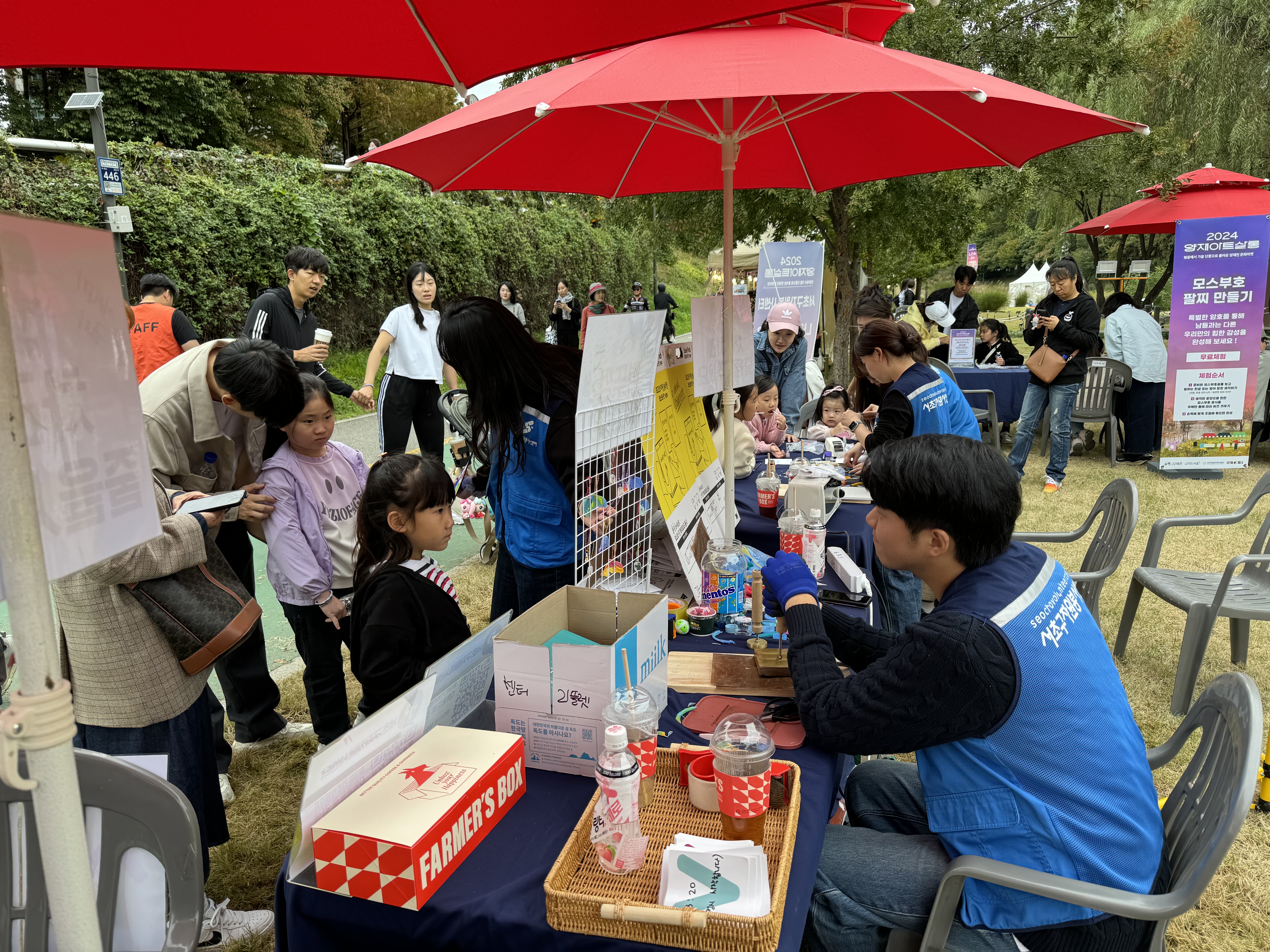 시민들의 발걸음이 북새통을 이루는 '양재아트살롱' 현장에 착한안테나도 센터 홍보부스를 열고 시민들을 만났습니다.
