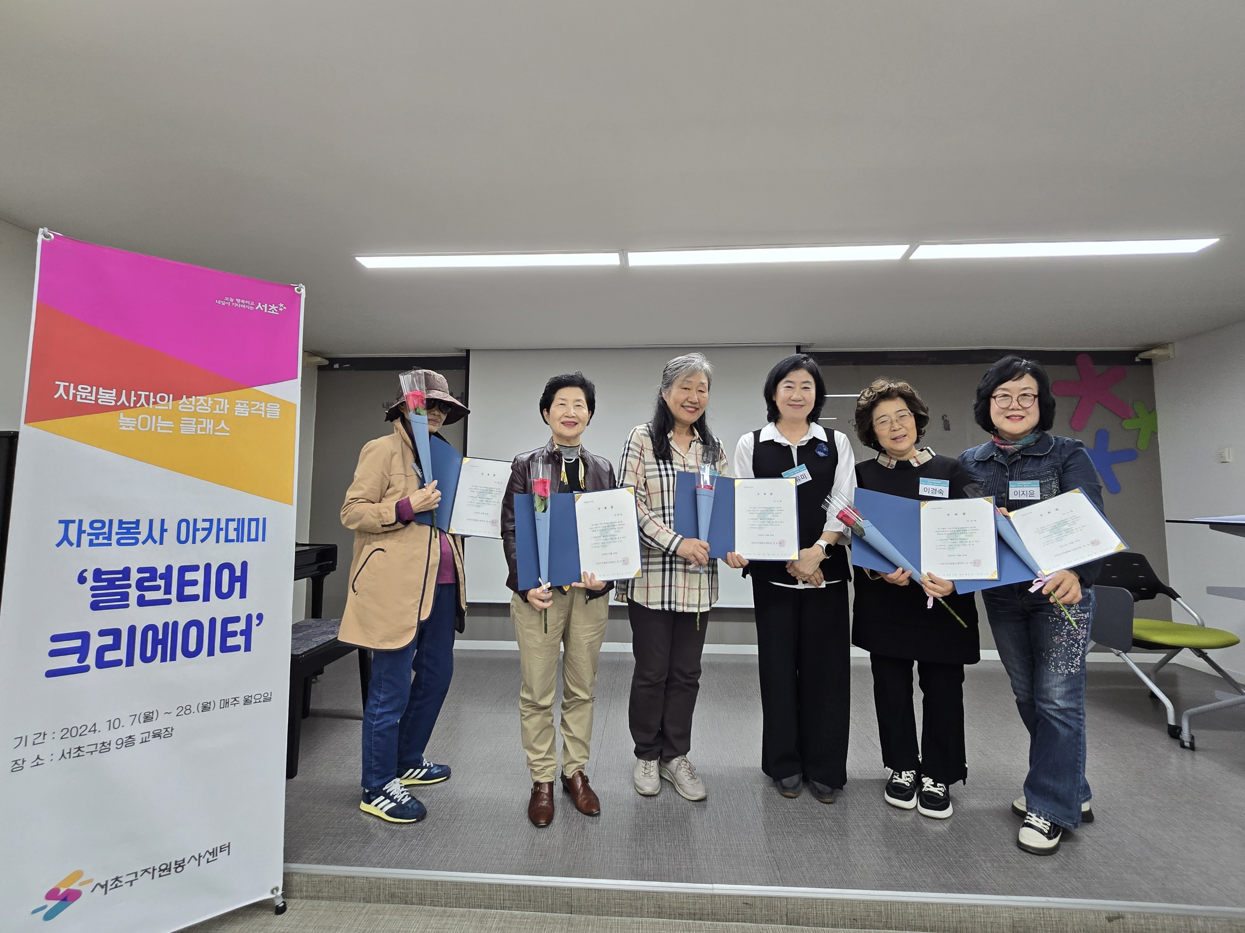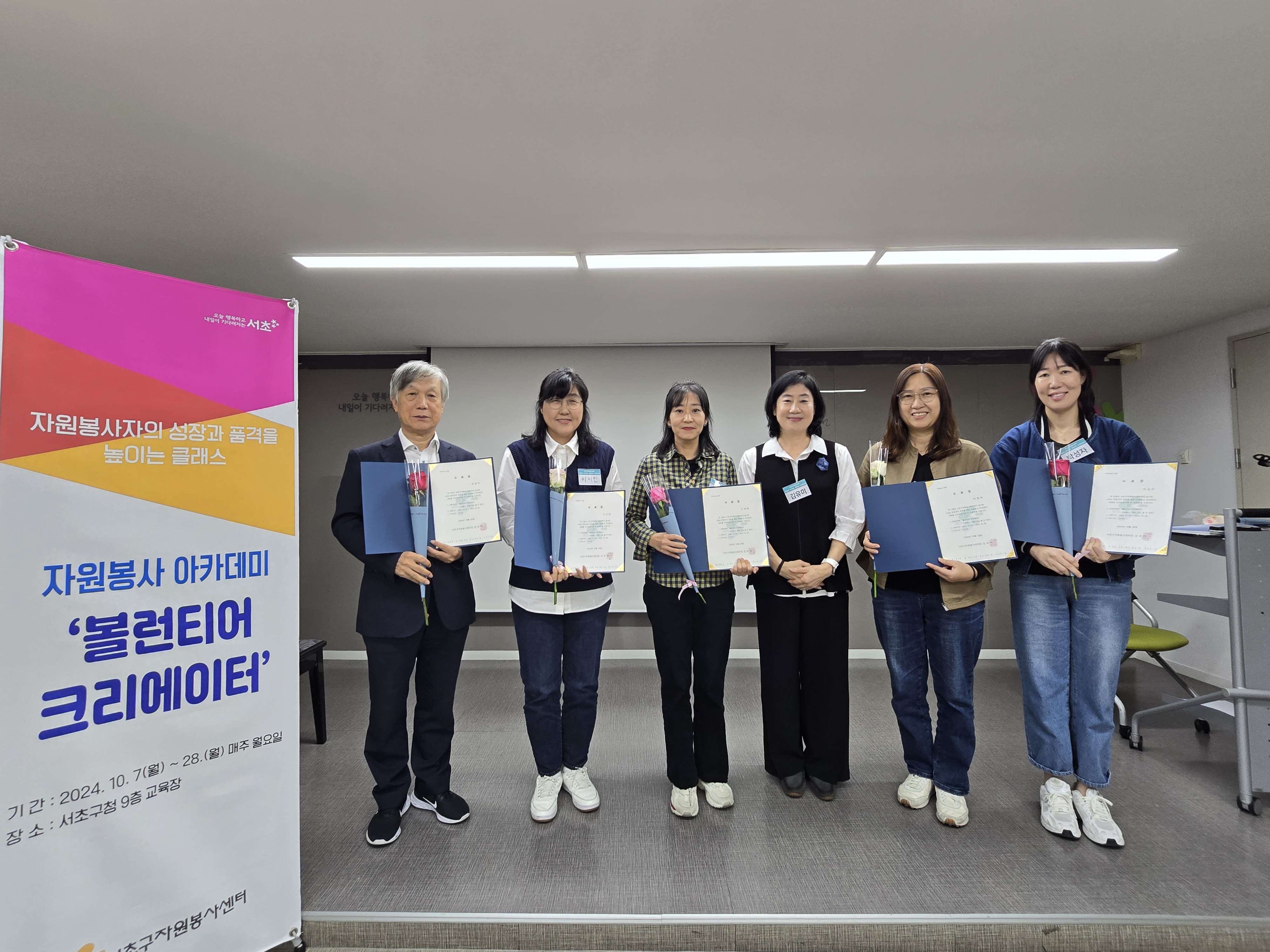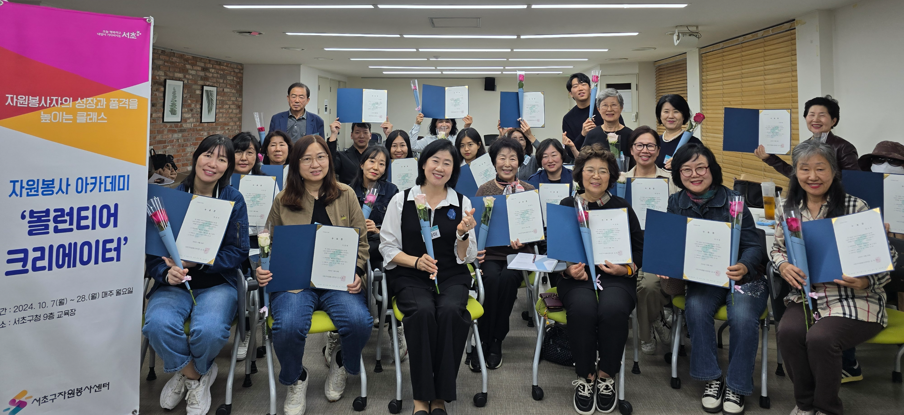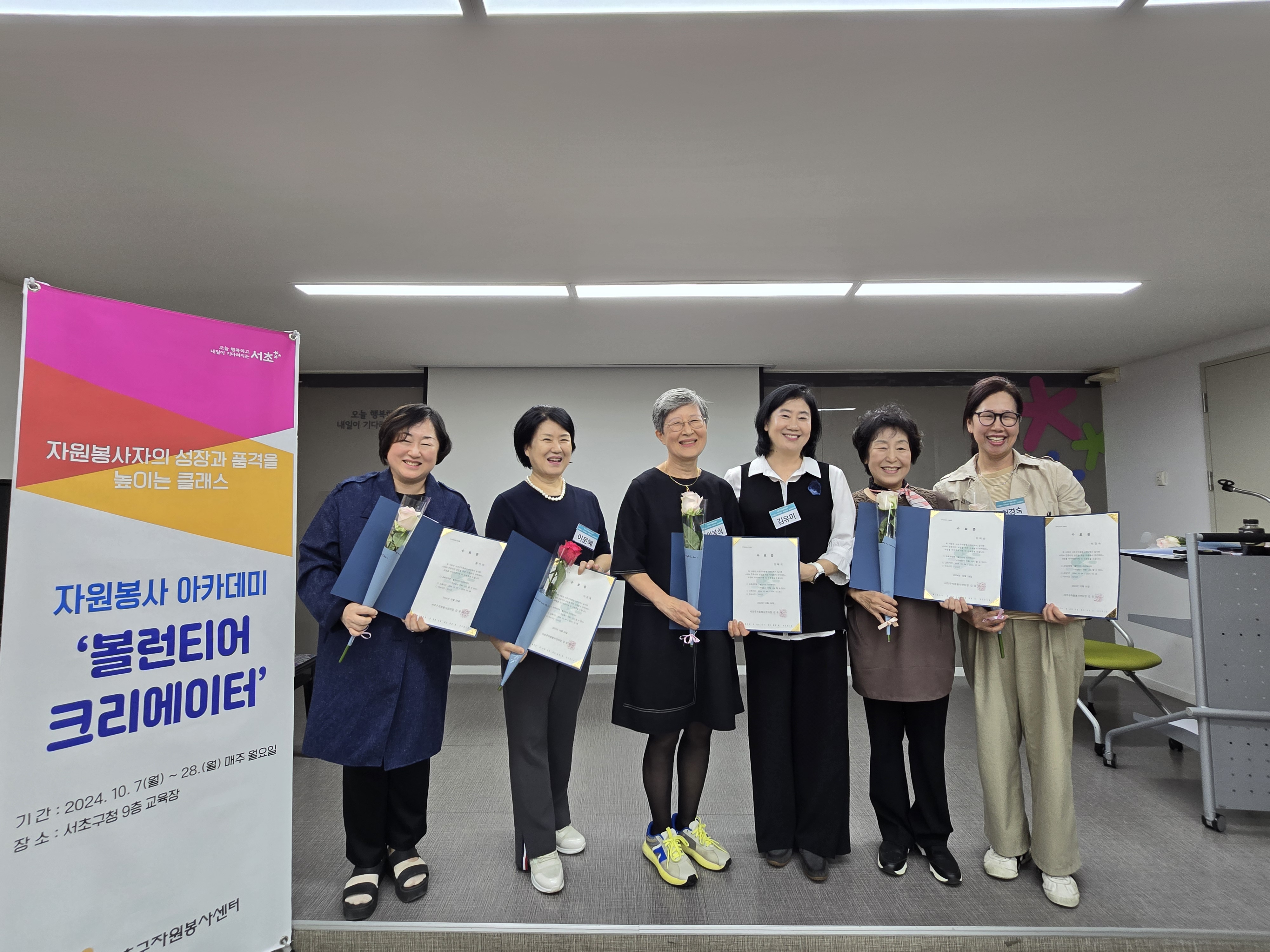 새로운 자원봉사 문화와 교육을 희망하는 자원봉사자들을 위해 기획했던 '2024 자원봉사 아카데미'가 볼런티어 크리에이터 수료식을 끝으로 대장정이 마무리되었습니다.