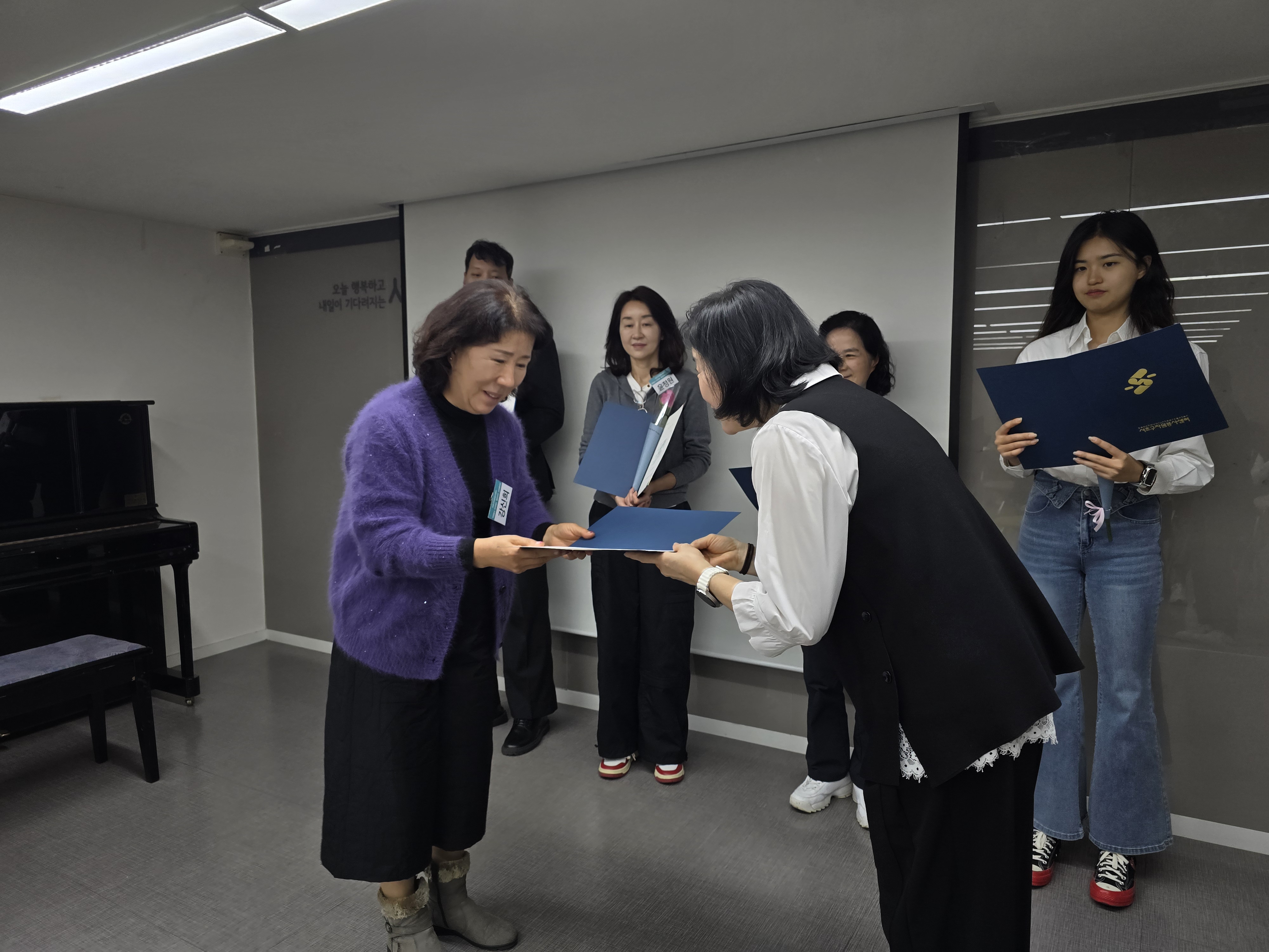 바쁜 일정속에서도 꾸준히 참여해주신 수강생분들께 감사의 마음을 담아 꽃다발과 함께 수료증을 전달하였고, 총 24명이 교육과정을 수료하셨습니다.