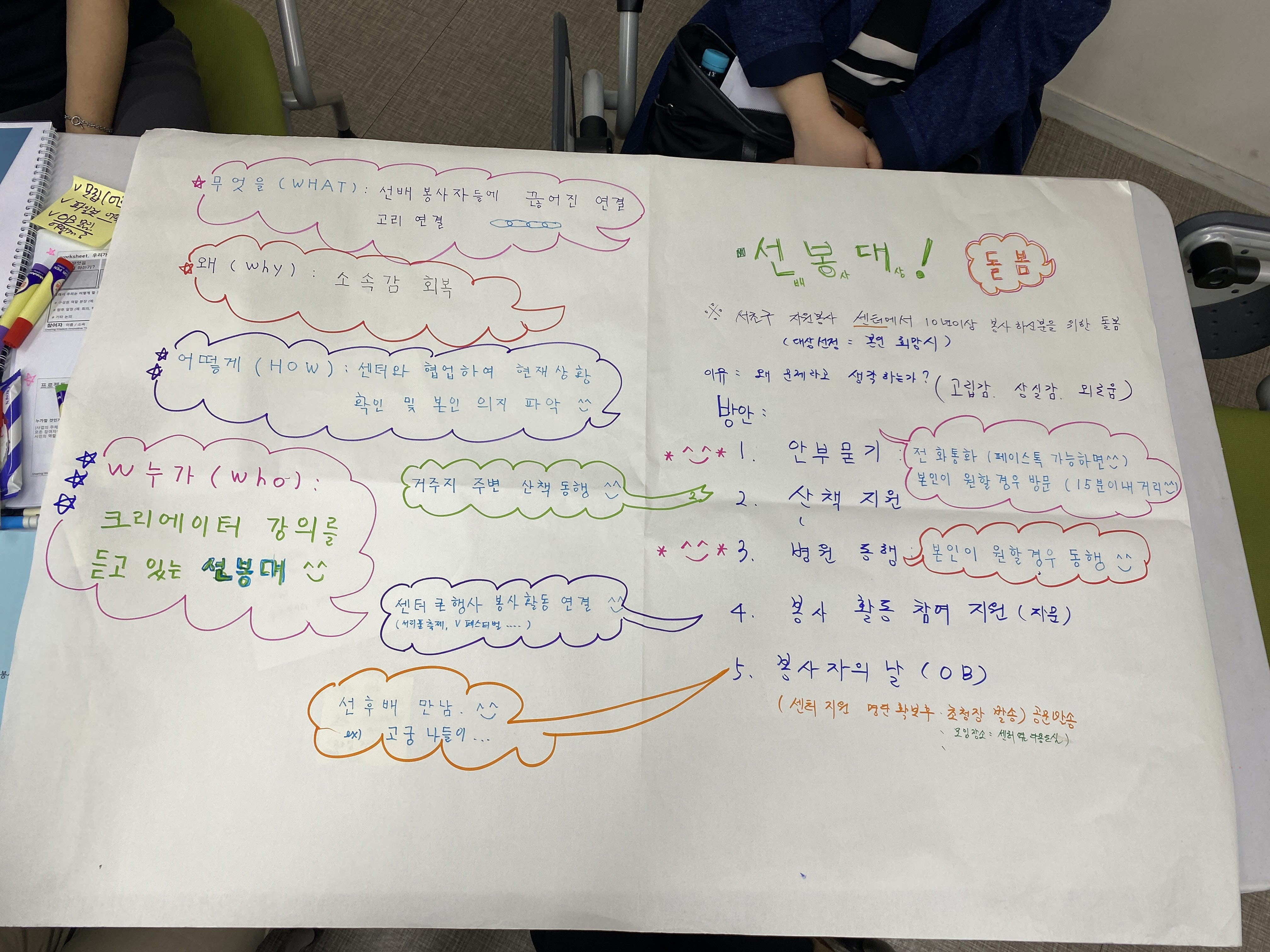 이 날은 조별로 수강생들이 자원봉사 프로그램 기획하고 발표하는 시간이 되었는데요.