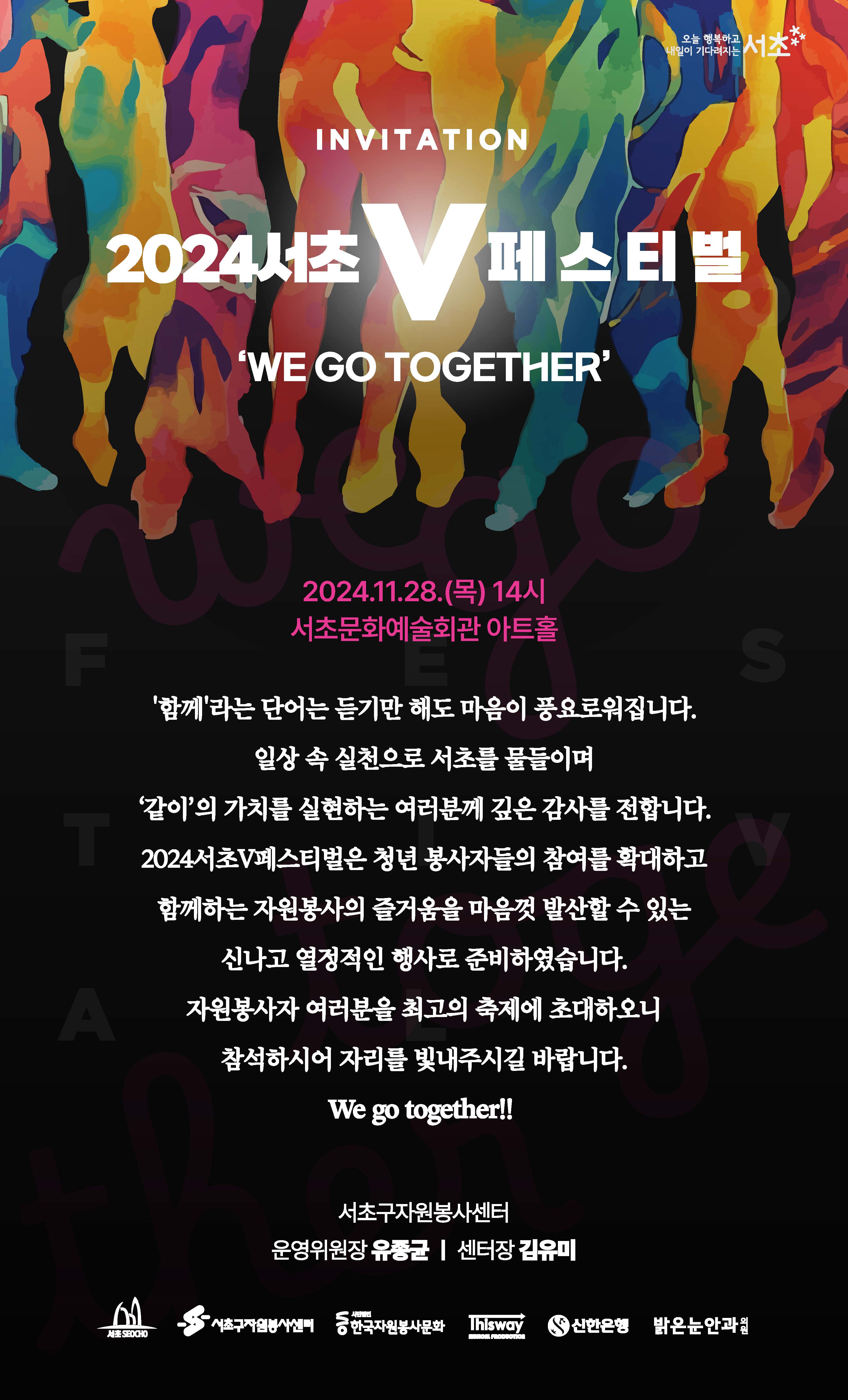 | [2024서초V페스티벌] 청년 공연 봉사자 당신을 기다립니다. (0) | 2024.10.11 |