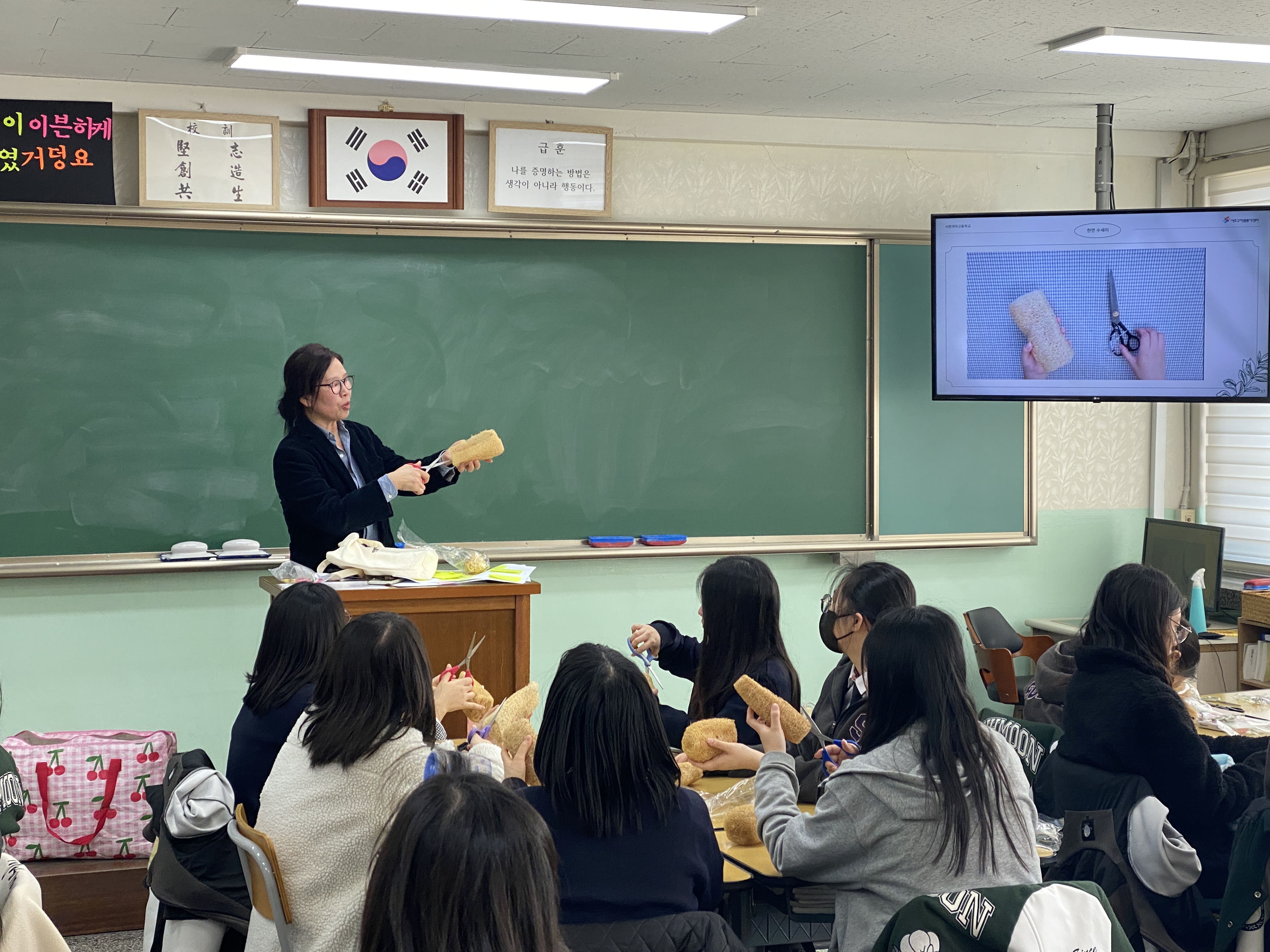서문여고 1, 2학년 학생들이 만든 친환경 수세미를 모아 지역사회에 전달하고자 합니다.
