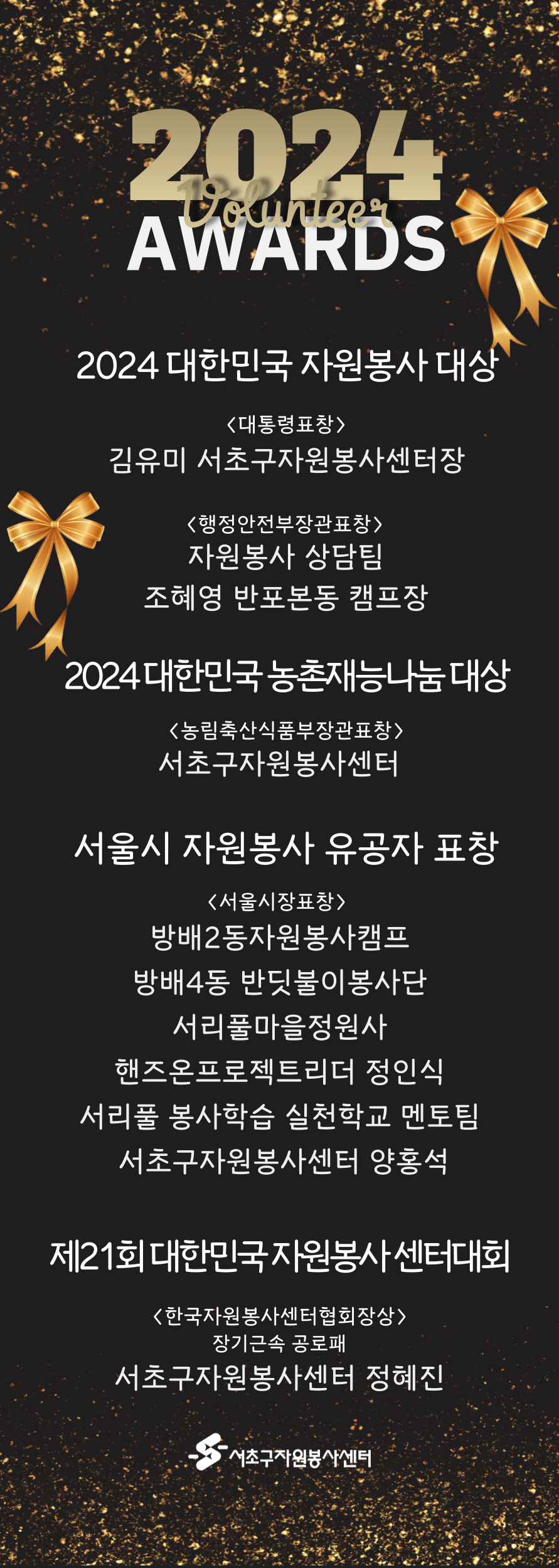 | 2024 서초V페스티벌 '봉사활동 시간에 따른 수상자' 명단 공고 (5) | 2024.11.08 |