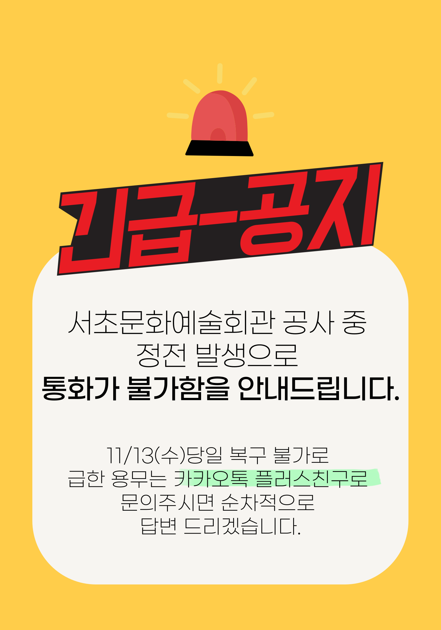 카테고리 없음 [긴급공지]11/13(수) 서초문화예술회관 건물 정전으로 인한 통화 불가 안내 2024. 11. 13. 공유하기 게시글 관리 언제나 함께 하고 싶은 최고의 자원봉사 파트너! 서초구자원봉사센터 저작자표시 비영리 변경금지 (새창열림)