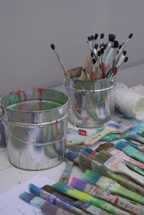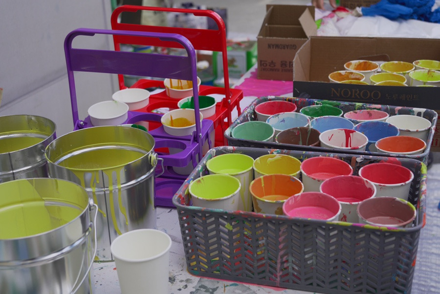 알록달록한 색의 페인트들로
