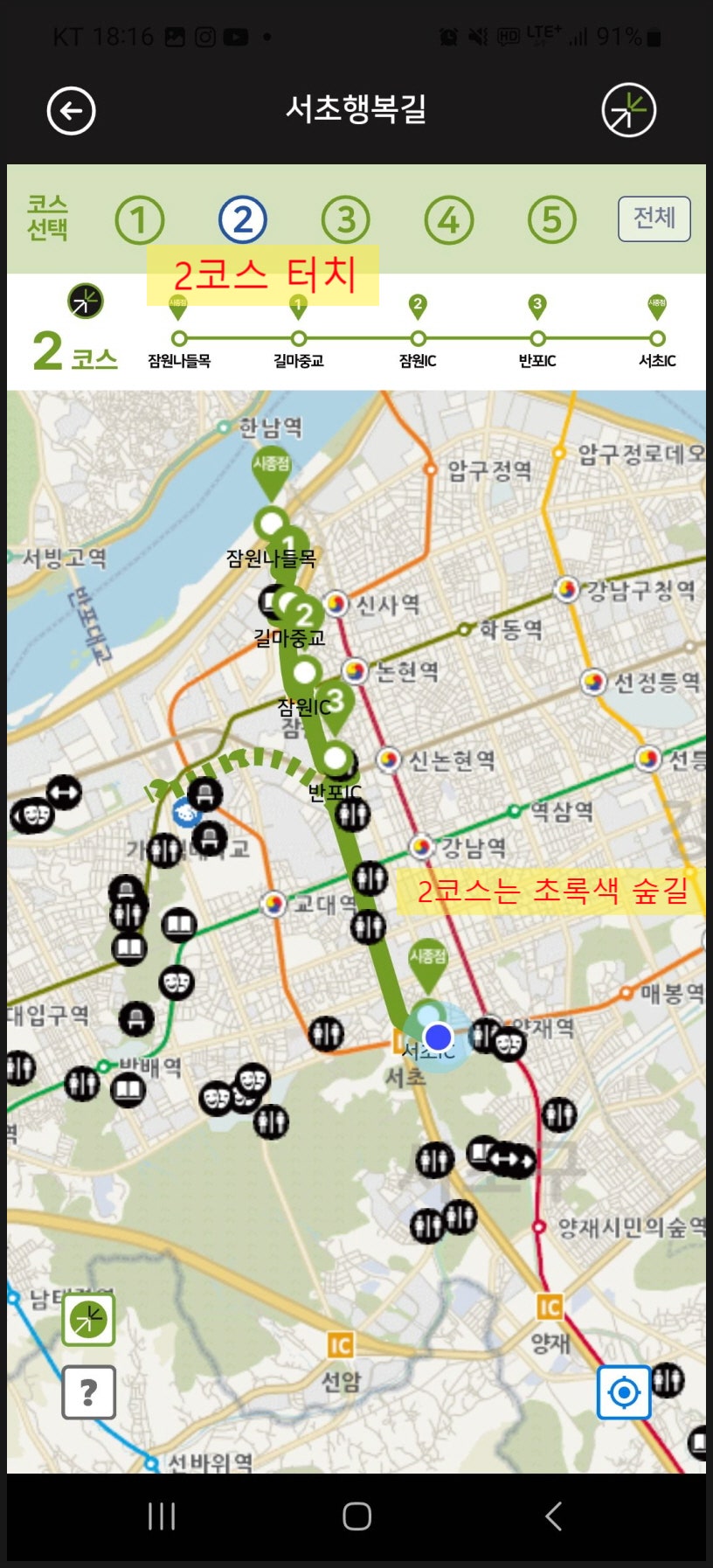 서행길은 서초 스마트시티 앱을 활용하면 더욱 더 자세한 코스와 위치를 확인해보실 수 있으니
