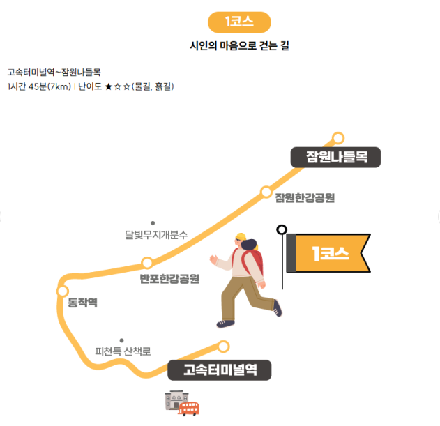 반포한강공원까지 산책할 수 있는 것이 1코스의 매력입니다.