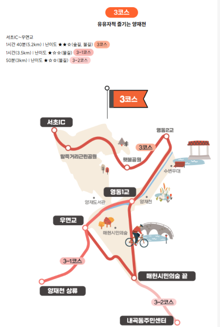 ★3코스: 서초IC~우면교 / ★참여캠프: 양재1동, 양재2동, 내곡동