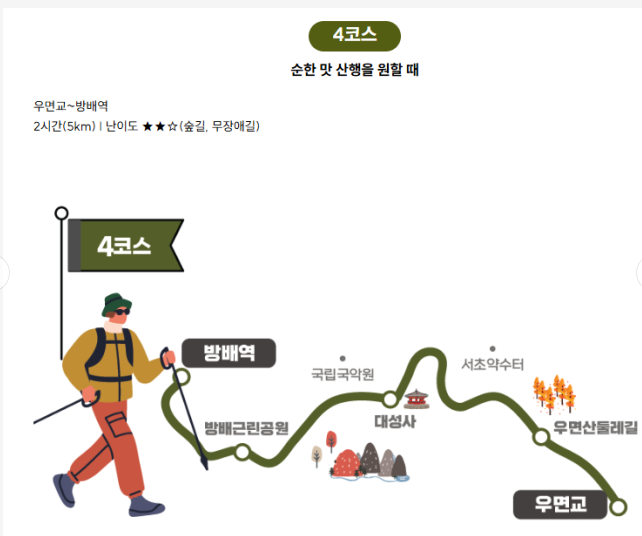 예술의전당을 거쳐 우면산까지 걸을 수 있는 4코스는 무장애길이라는 산책로가 구성되어 있어
