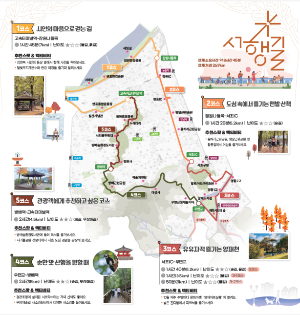 '서'초 '행'복 '길' 일명 '서행길'이라는 산책코스를 만들었습니다.