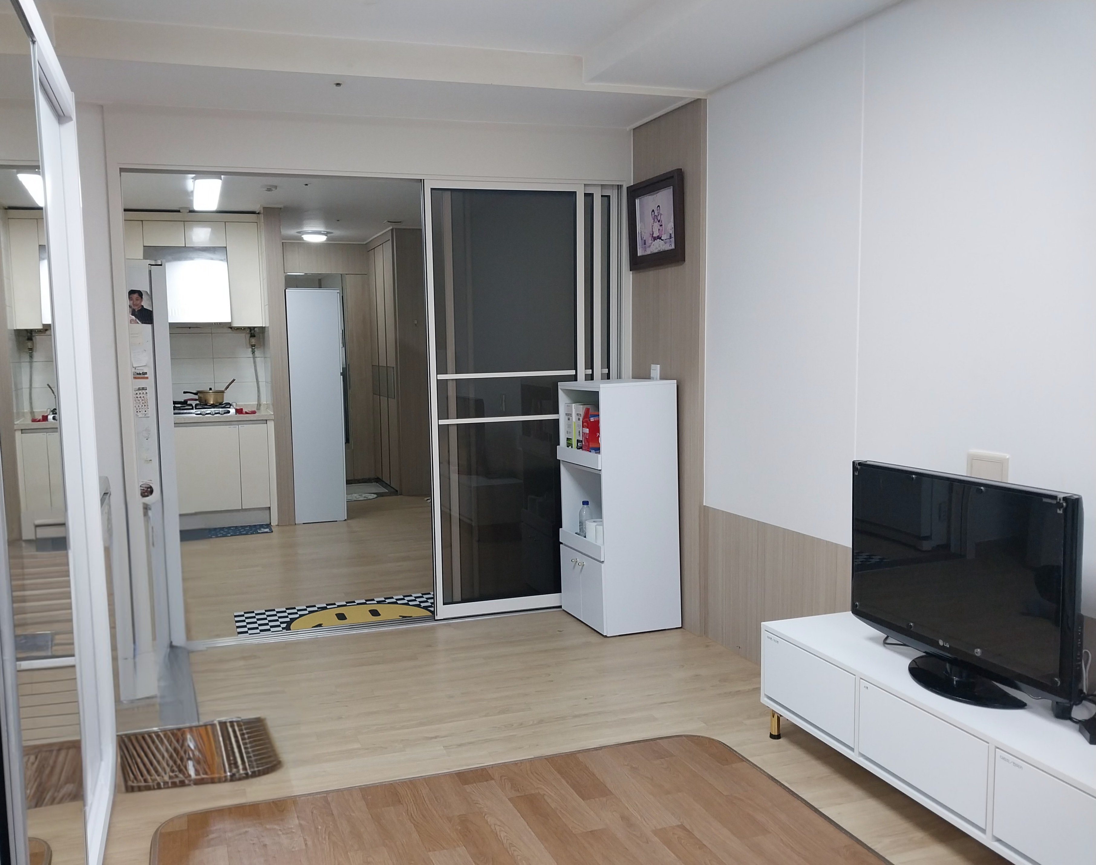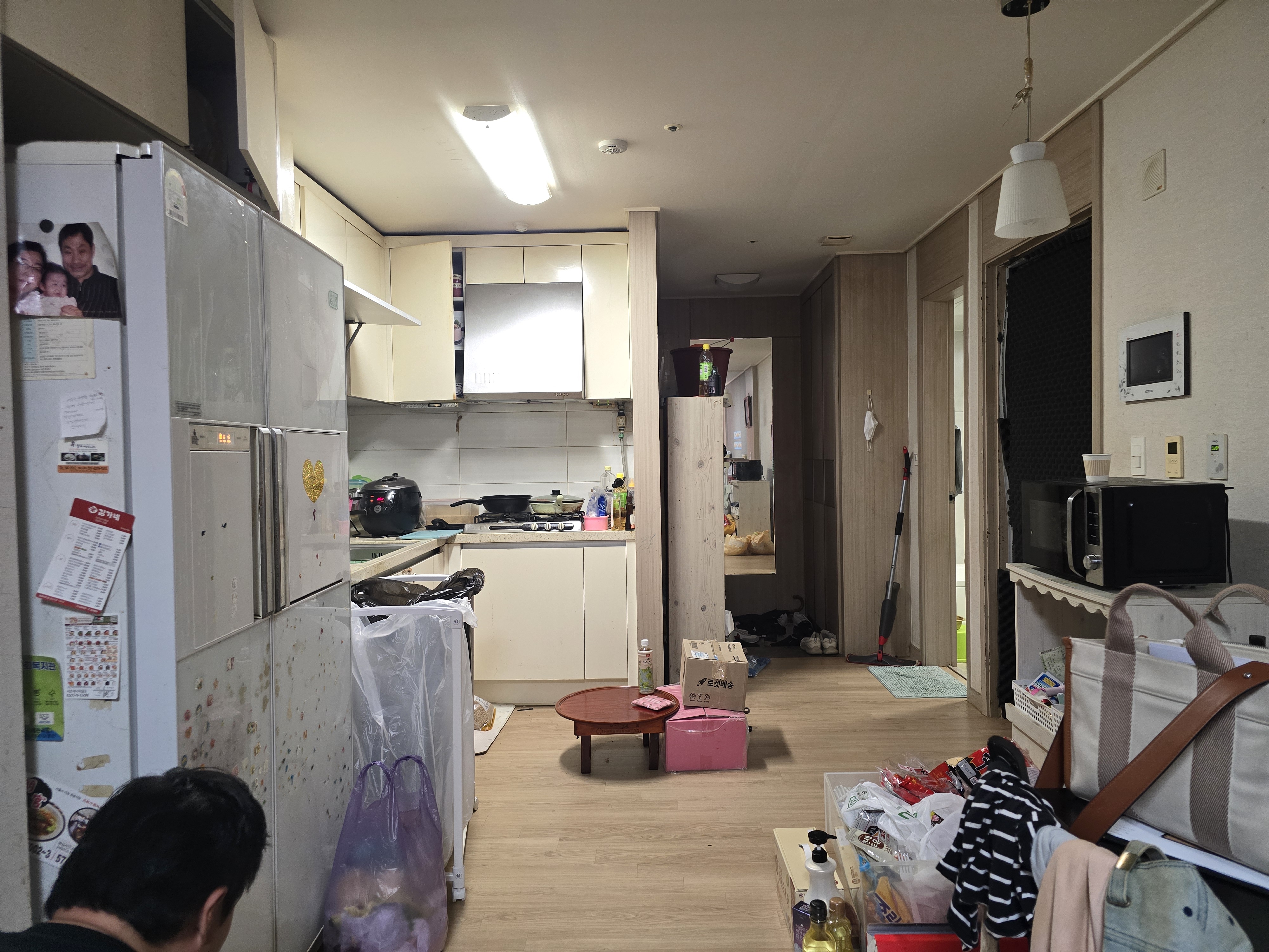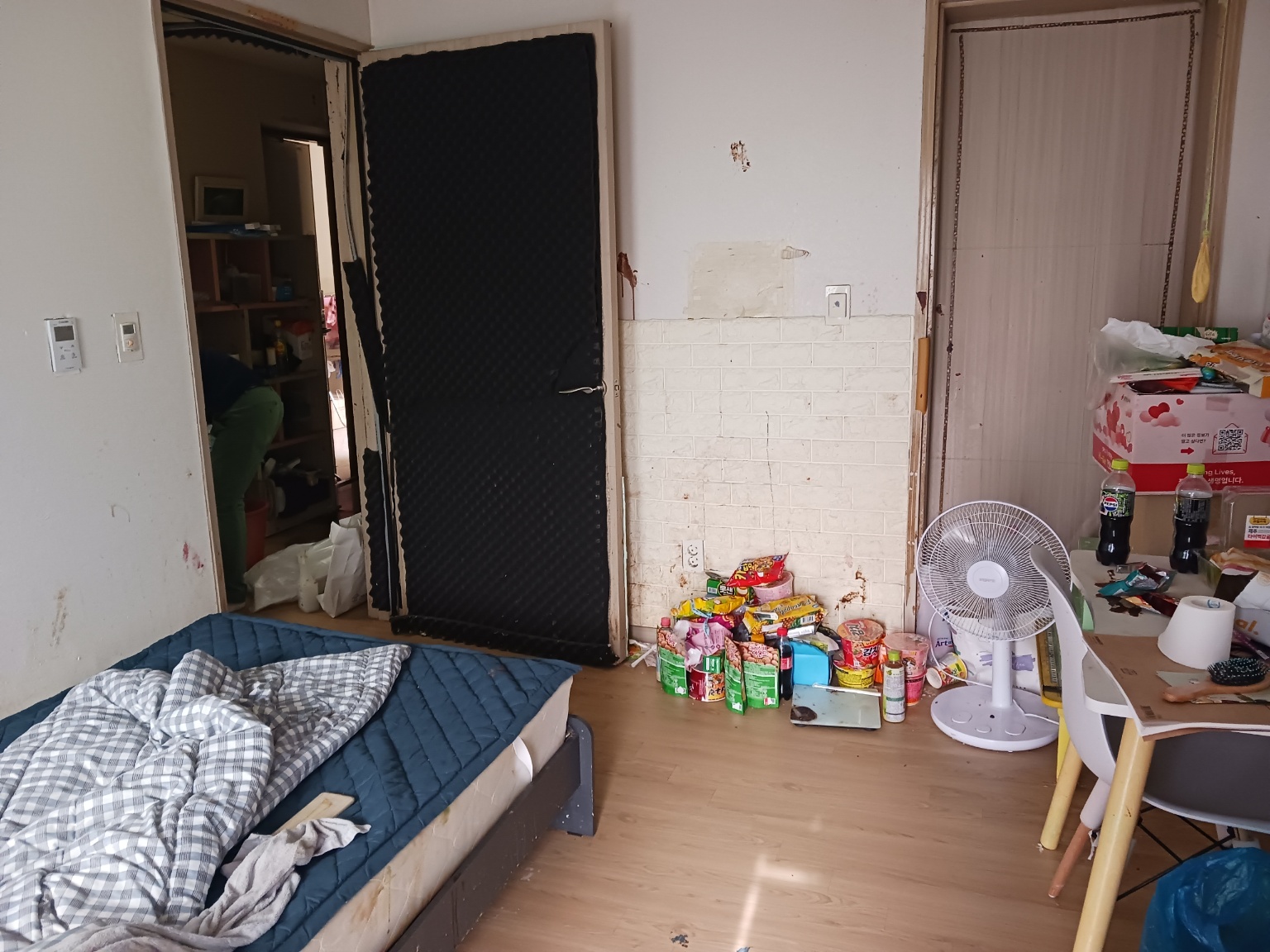 첫 번째, 대상 가구는 방하나와 거실로 구성된 주거공간에 부모님과 자녀 3명이 함께 생활하는 가정이였습니다. 그렇다보니 거실에서 생활하는 부모님의 생활의 분리가 필요하였고, 세월로 집안 구석구석 핀 곰팡이로 가구와 도배의 교체가 시급했습니다.