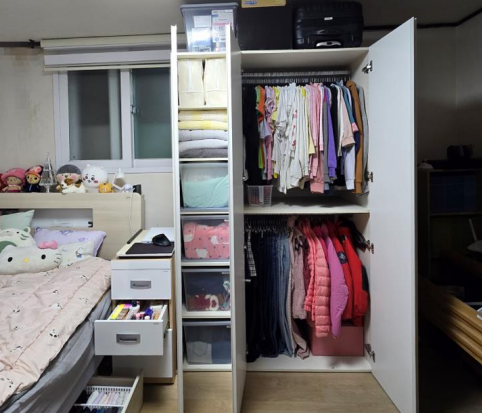 두 번째 가구의 경우, 오래된 연립주택에 거주하고 있는 이웃으로 화장실 마감재의 노후로 천장에 불이 붙는 등 화재 위험에 노출되어 안전 개선이 시급한 가정이였습니다. 또한, 다녀자와 생활하고 있어 정리수납 역시 필요한 상황이였습니다.