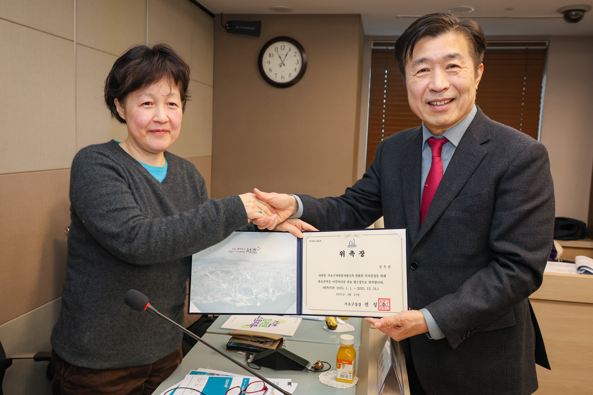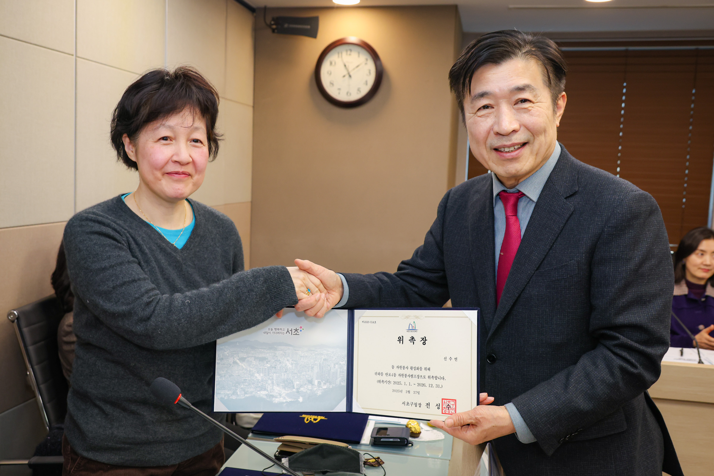 이날 위촉식에서는 구청장님께서 직접 참석해 한 분 한 분 눈을 맞추고 악수를 나누며 따뜻한 인사말씀을 전하셨는데요.