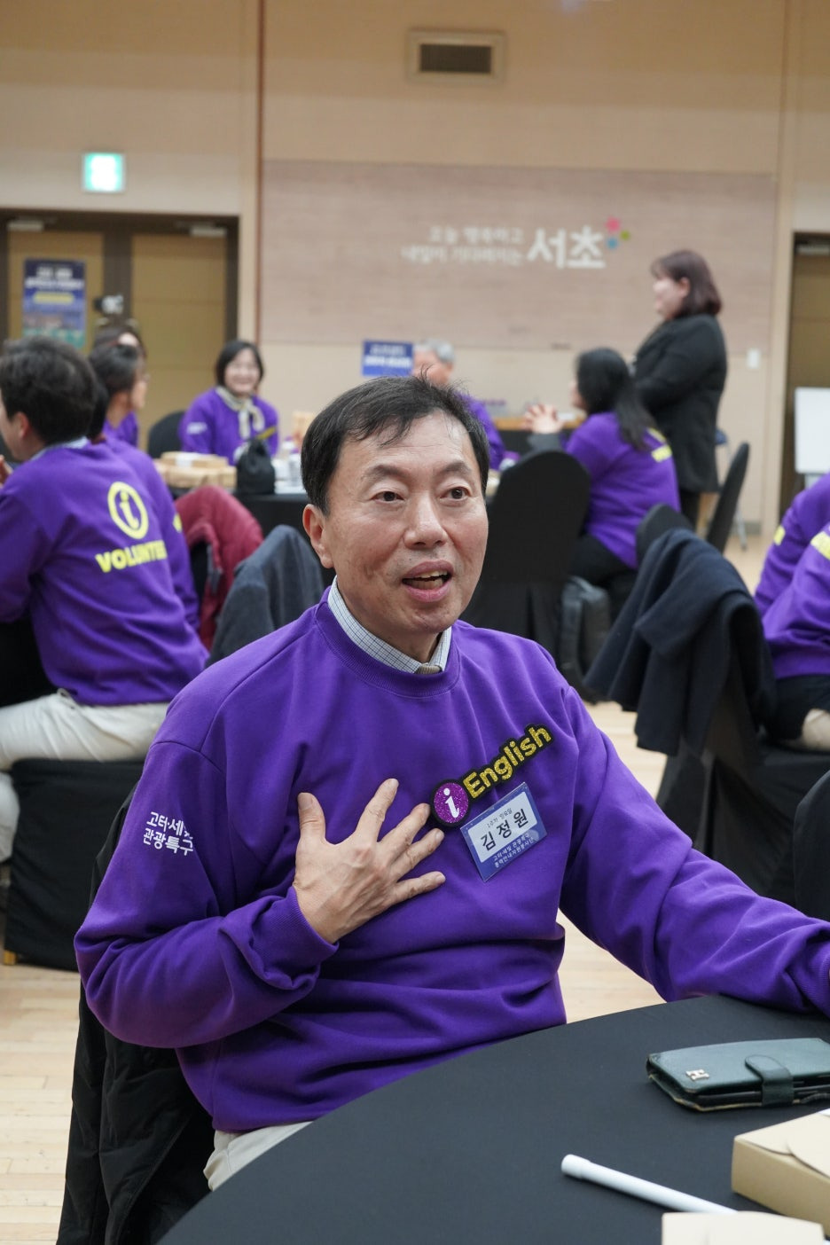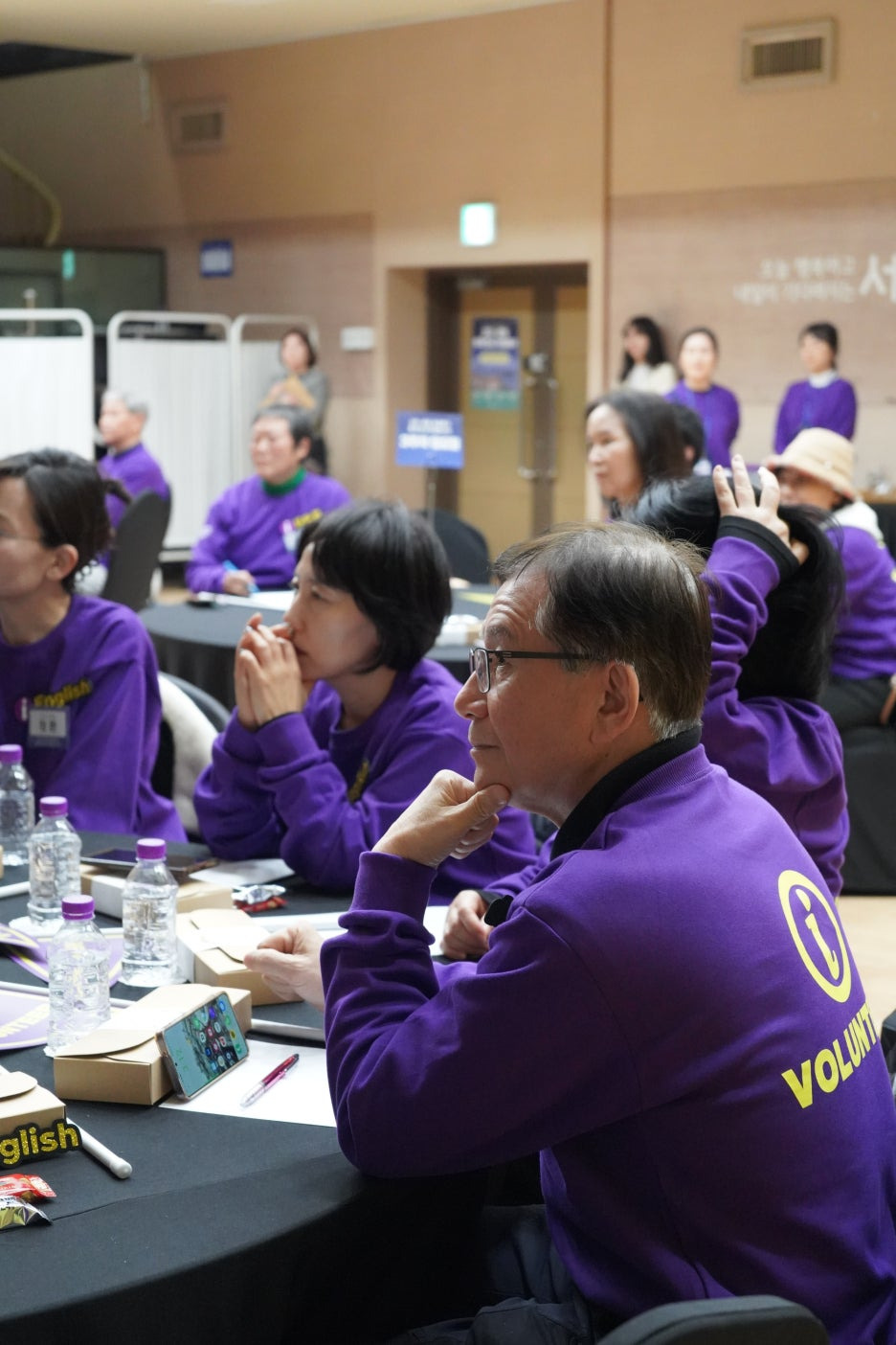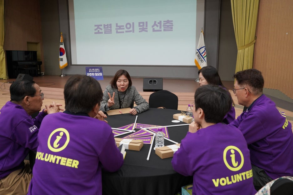 맨투맨을 입고 자리에 앉으신 뒤, 각 조의 분들과 사진도 찍고 화기애애한 첫 만남의 시간을 가지셨습니다!