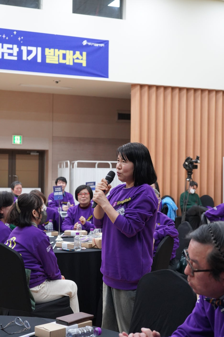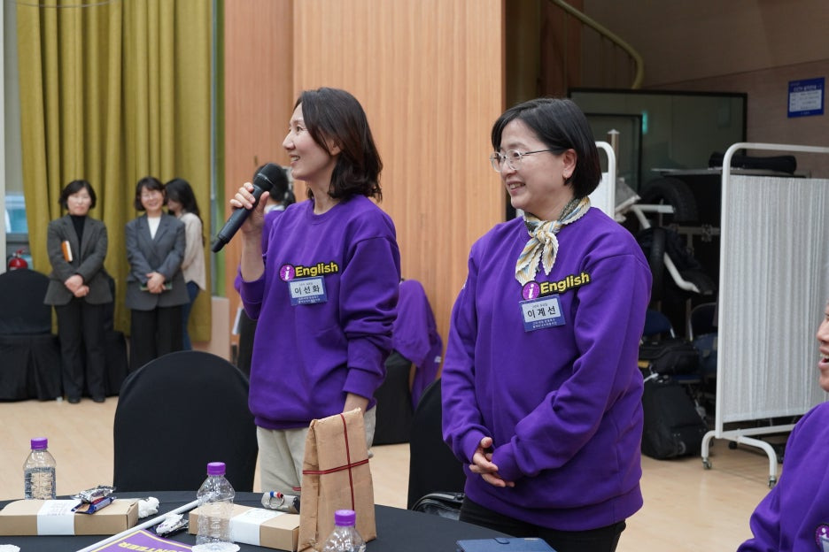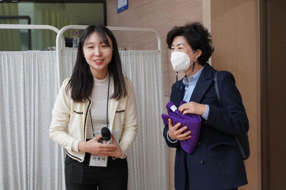 보라색으로 꽉 채워진 강당의 모습을 보니 화사한 꽃밭에 온 것 같더라고요.