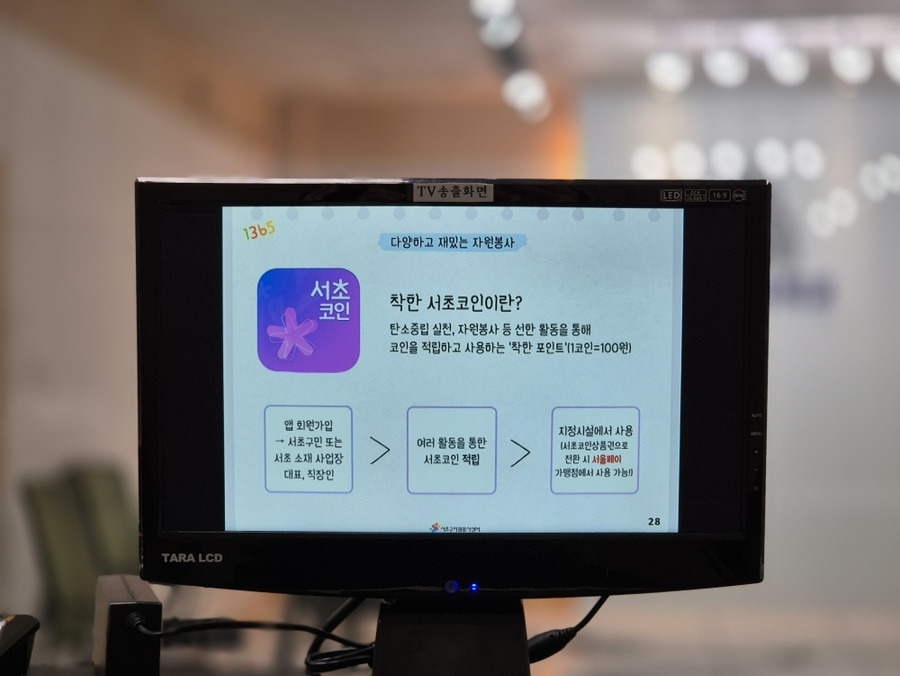 1365 자원봉사 활동, 착한서초코인, 디지털 탄소발자국 줄이기 등으로 자원봉사를 할 수 있도록 유도하고 있습니다.