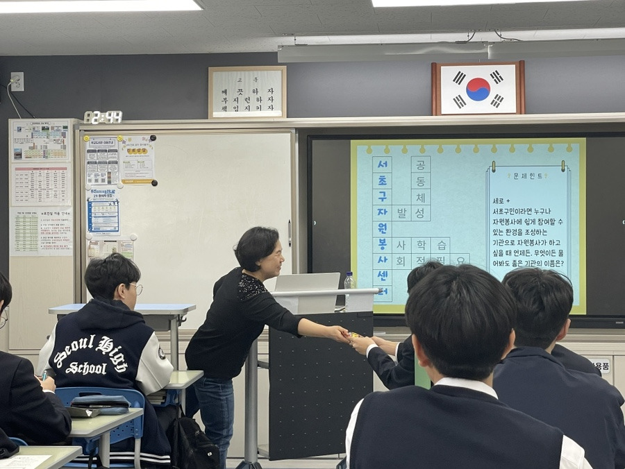 서울고등학교 전 학년을 대상으로 자원봉사 기본교육을 실시하였습니다.