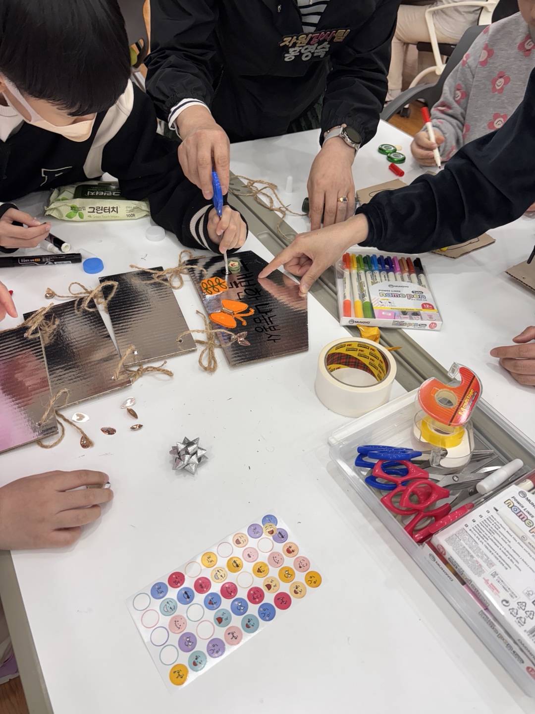 교육 당일, 자강팀은 일찍부터 복지관에 모여 준비에 박차를 가했습니다. 활동에 필요한 상자에 구멍을 뚫고 재료들을 정성스럽게 소분하고, 교육 자료를 최종 점검하는 모습에서 프로그램에 대한 애정이 느껴졌습니다.