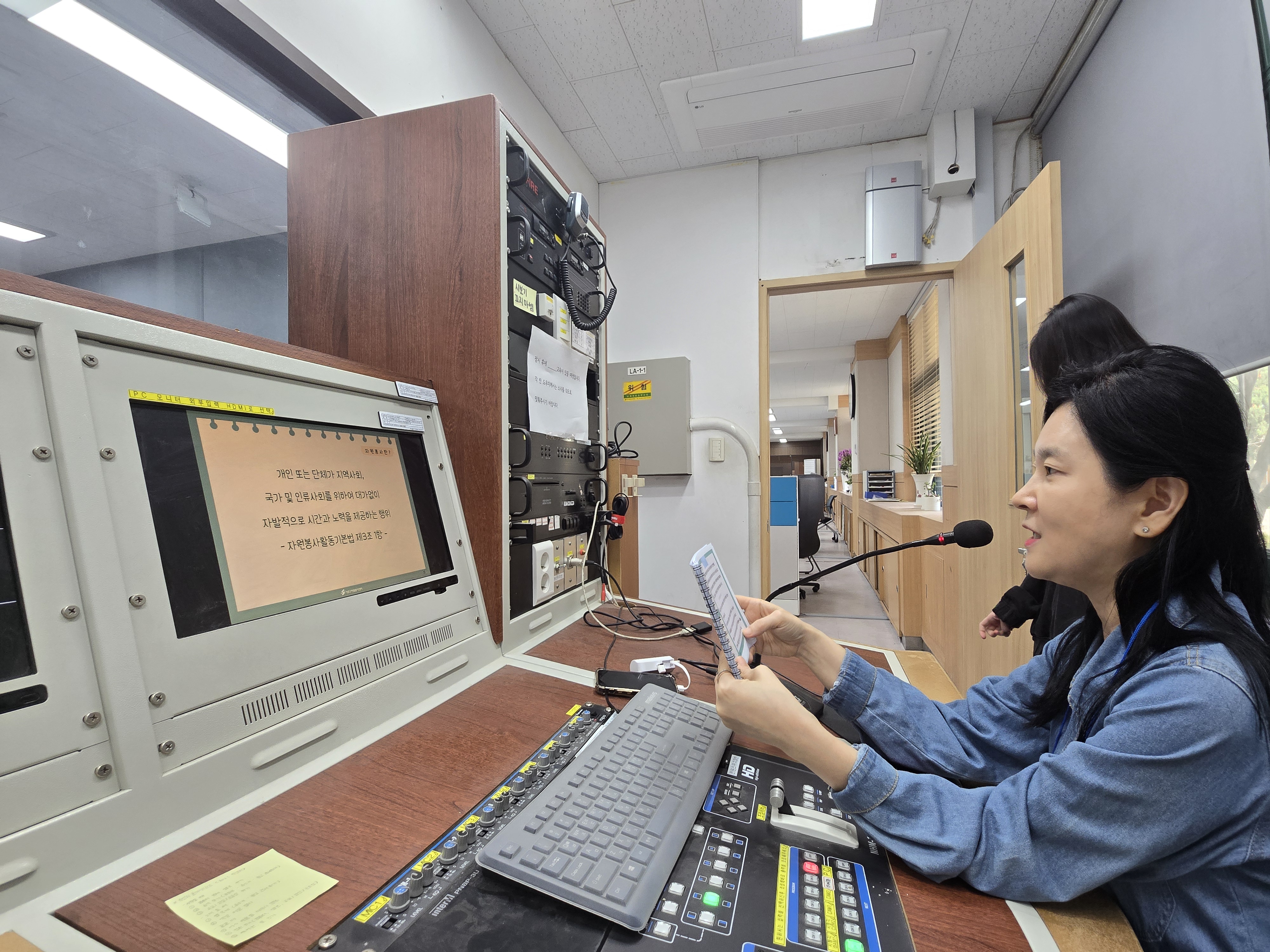 기존의 대면 교육방식과는 달리, 학교 방송실에서