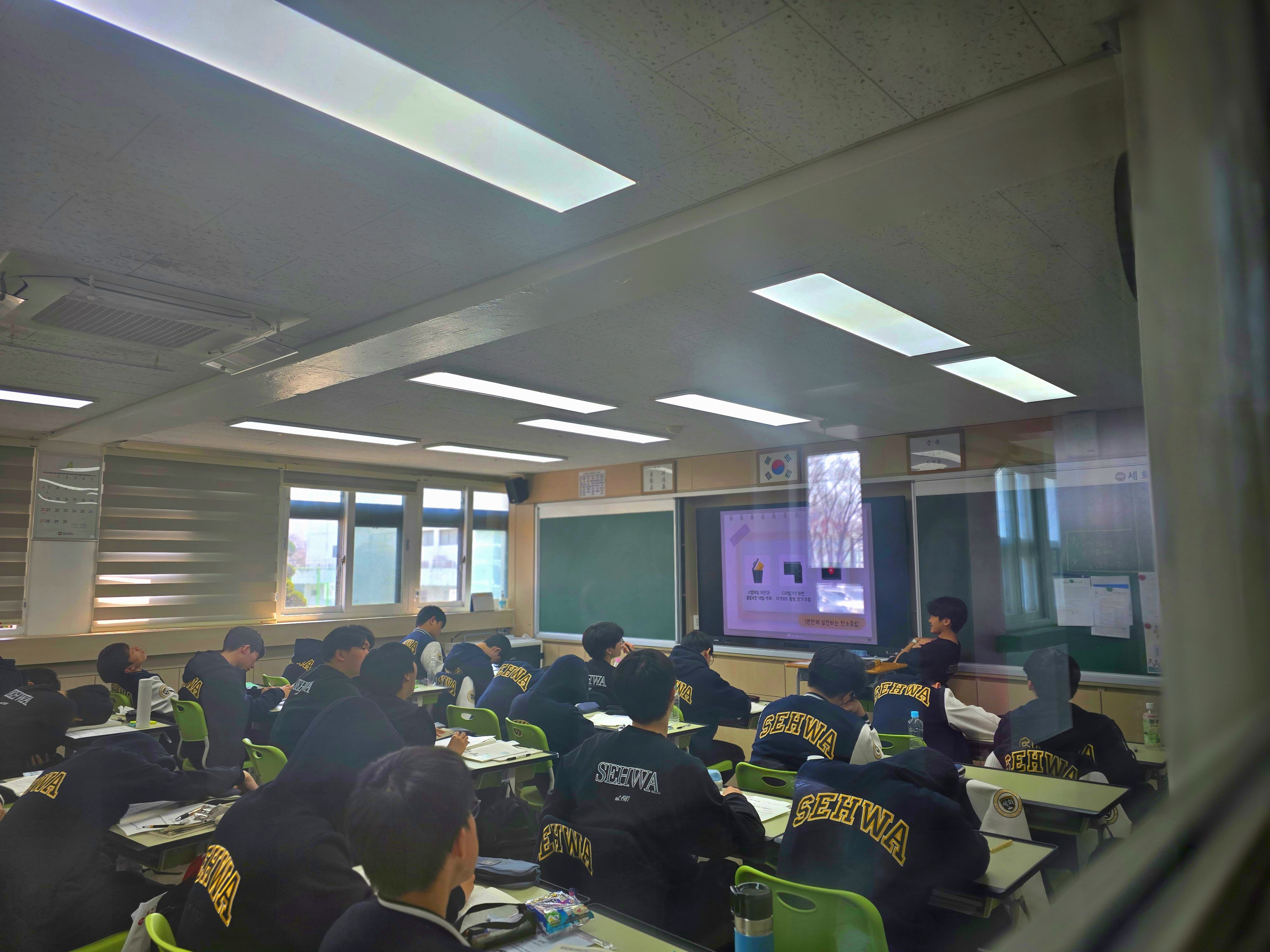 여러명의 강사님이 직접 교실에 들어가지 않고도 전학년을 동시에 교육할 수 있어