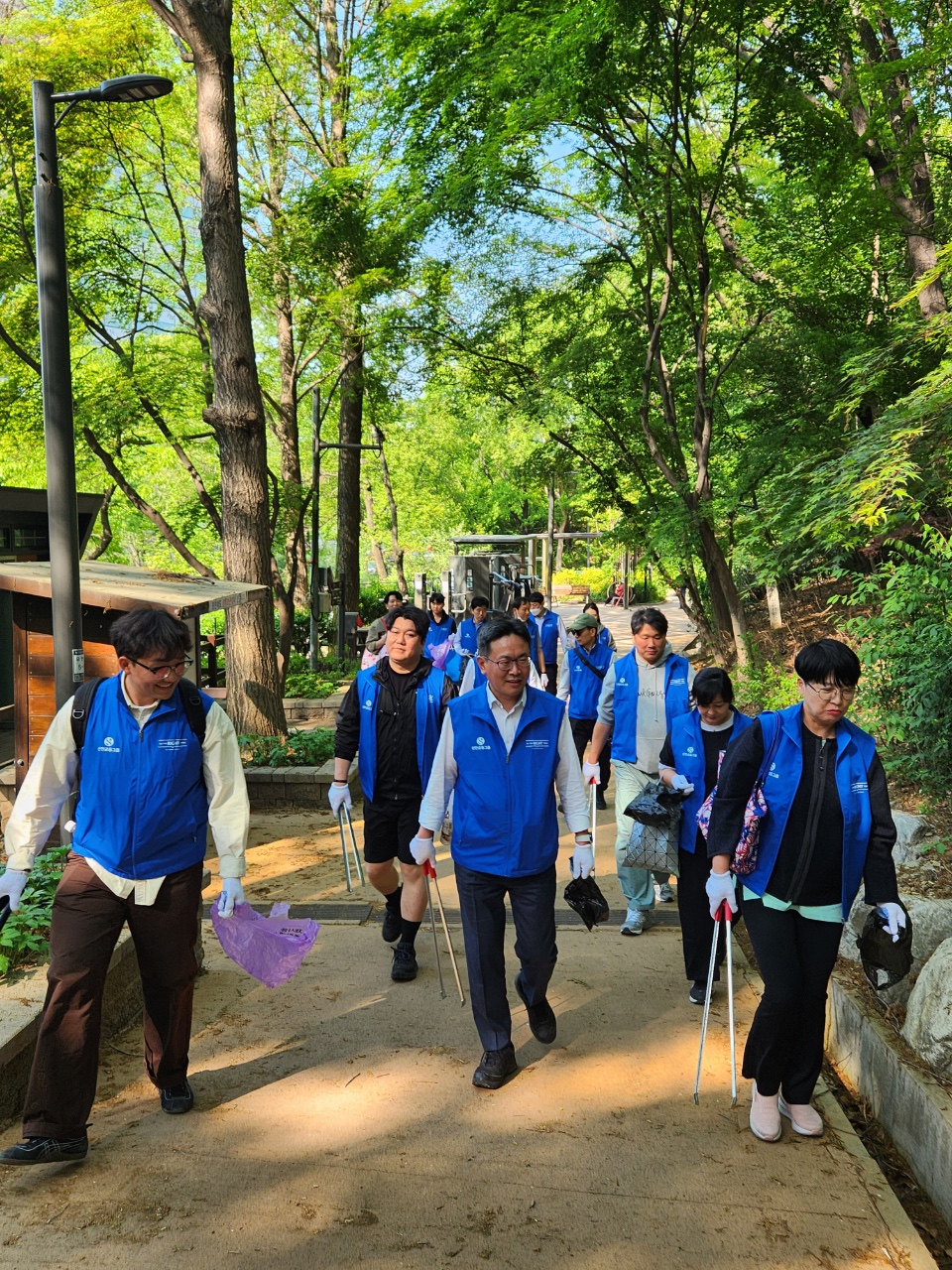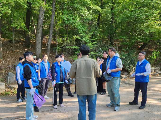 이 날 임직원 19명과 함께 서초구의 새롭게 조성된 '우면산 둘레길' 코스를 시작으로 정상에 위치한 소망탑까지