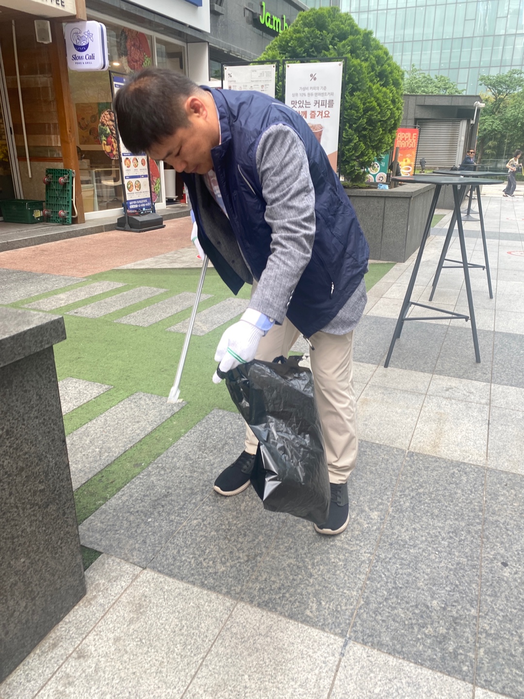 청결하고 깨끗한 거기를 조성하기 위해, 삼성생명 임직원 24명과 함께 구석구석 버려진 쓰레기를 찾아 수거하는