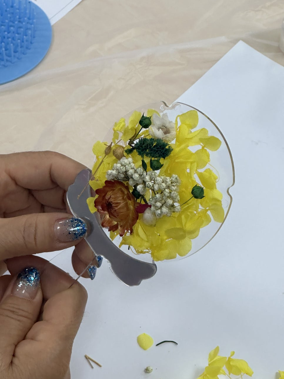 압화빗은 빗 사이에 원하는 만큼의 압화꽃을 넣어 완성하는것인데요,
