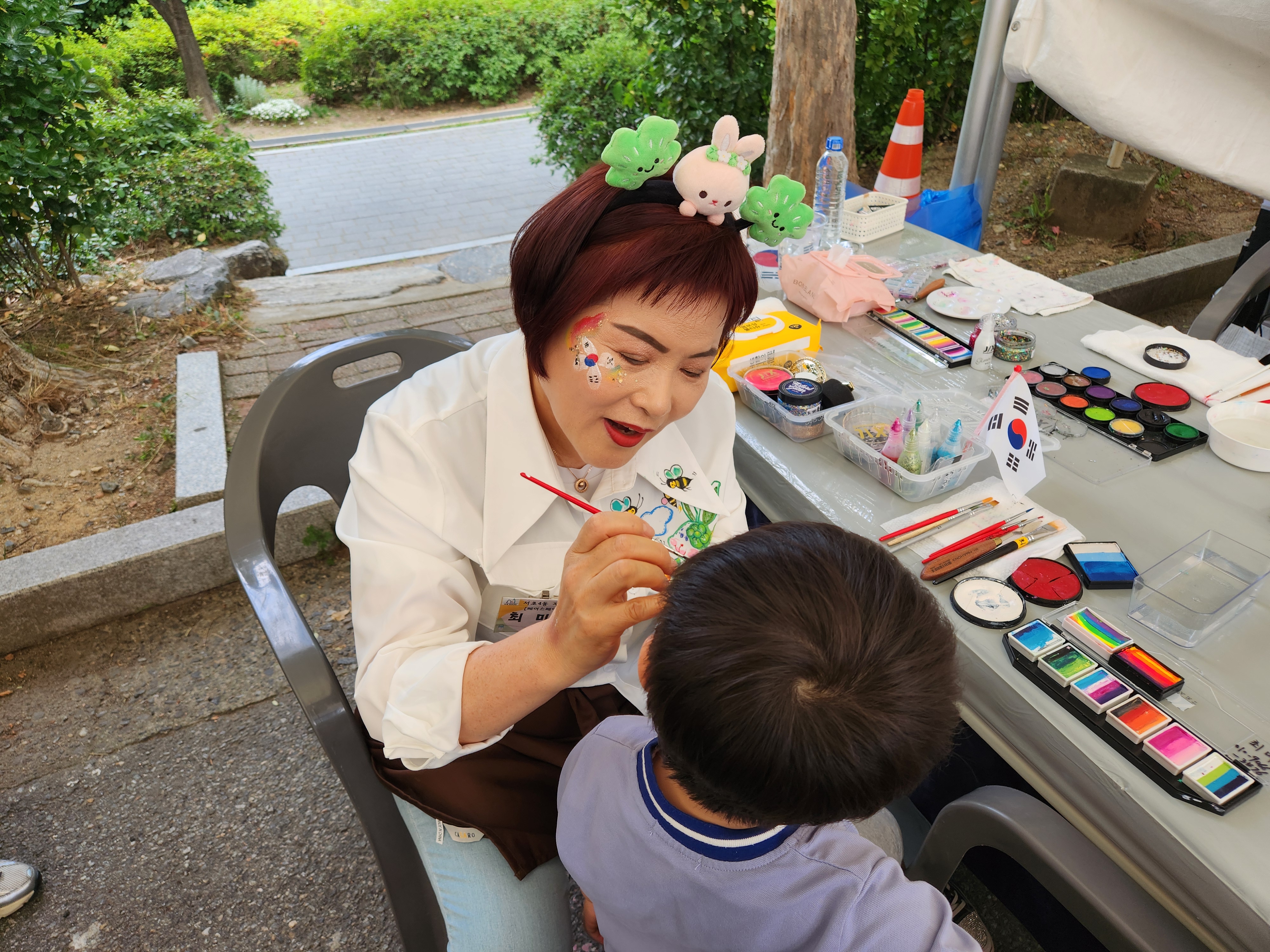 오늘 아트팀의 페이스페인팅은 행사 컨셉에 맞게 태극기를 중심으로 한 응용 그림으로 진행되었습니다.