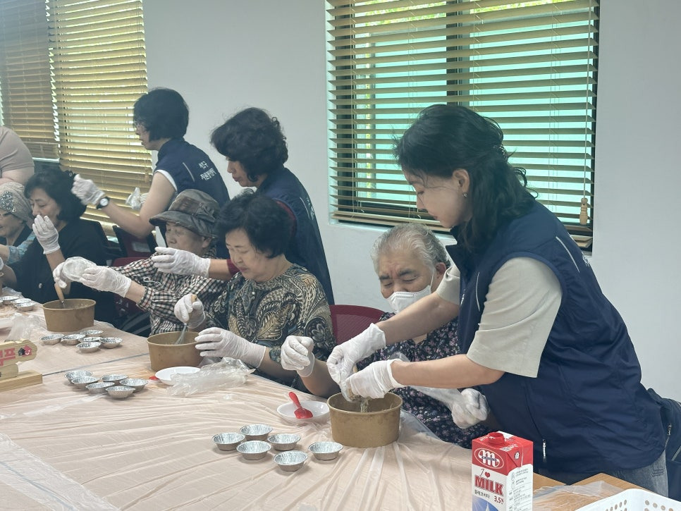 반죽을 하는 과정에서 조금 더 어르신분들을 도와드렸어요.