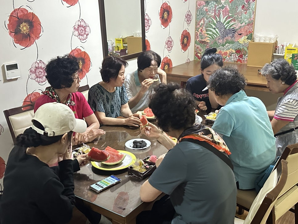 코겐 봉사단의 열정있는 교육에 보답으로 회장님이 수박과 떡늘 준비해주셨는데요,
