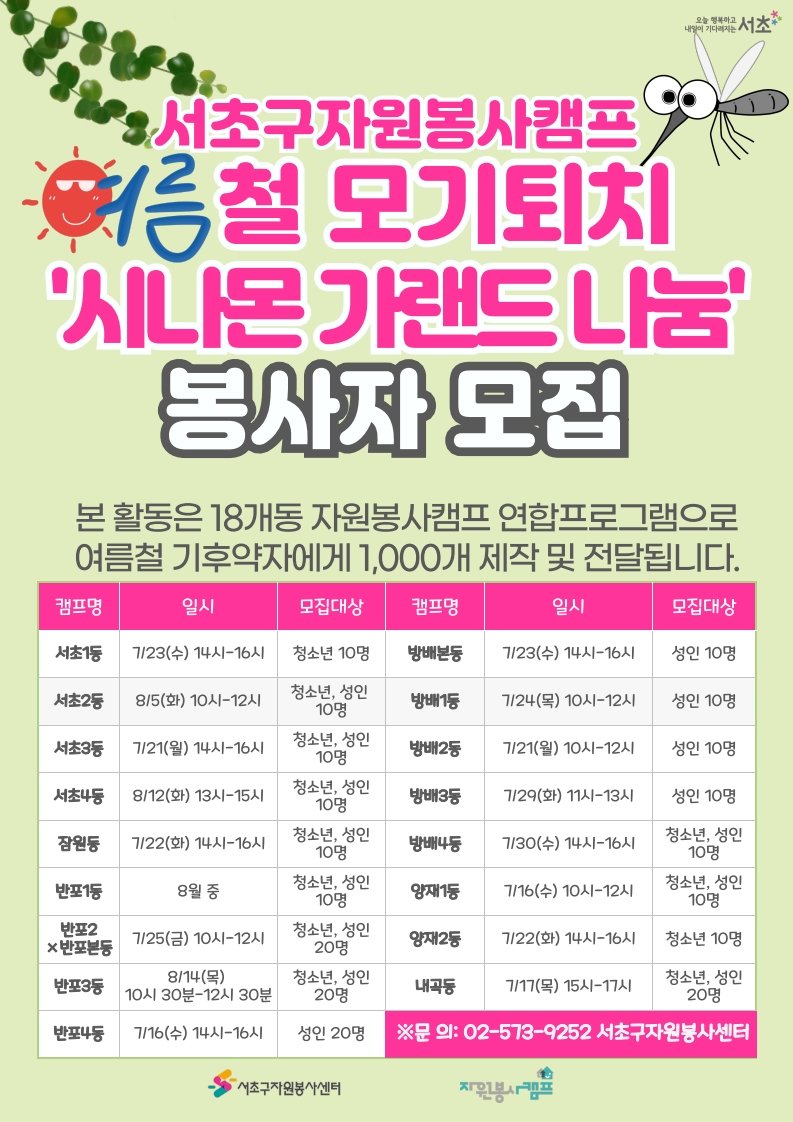 ★신청방법 및 문의 : 서초구자원봉사센터 카카오톡 OR 유선(02-573-9252)