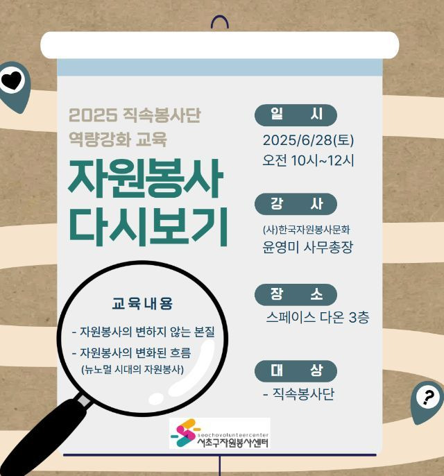 서초구자원봉사센터 직속봉사단이 지난 6월 마지막 토요일에, 역량 강화 교육 ‘자원봉사 다시 보기’에 참여했어요.
