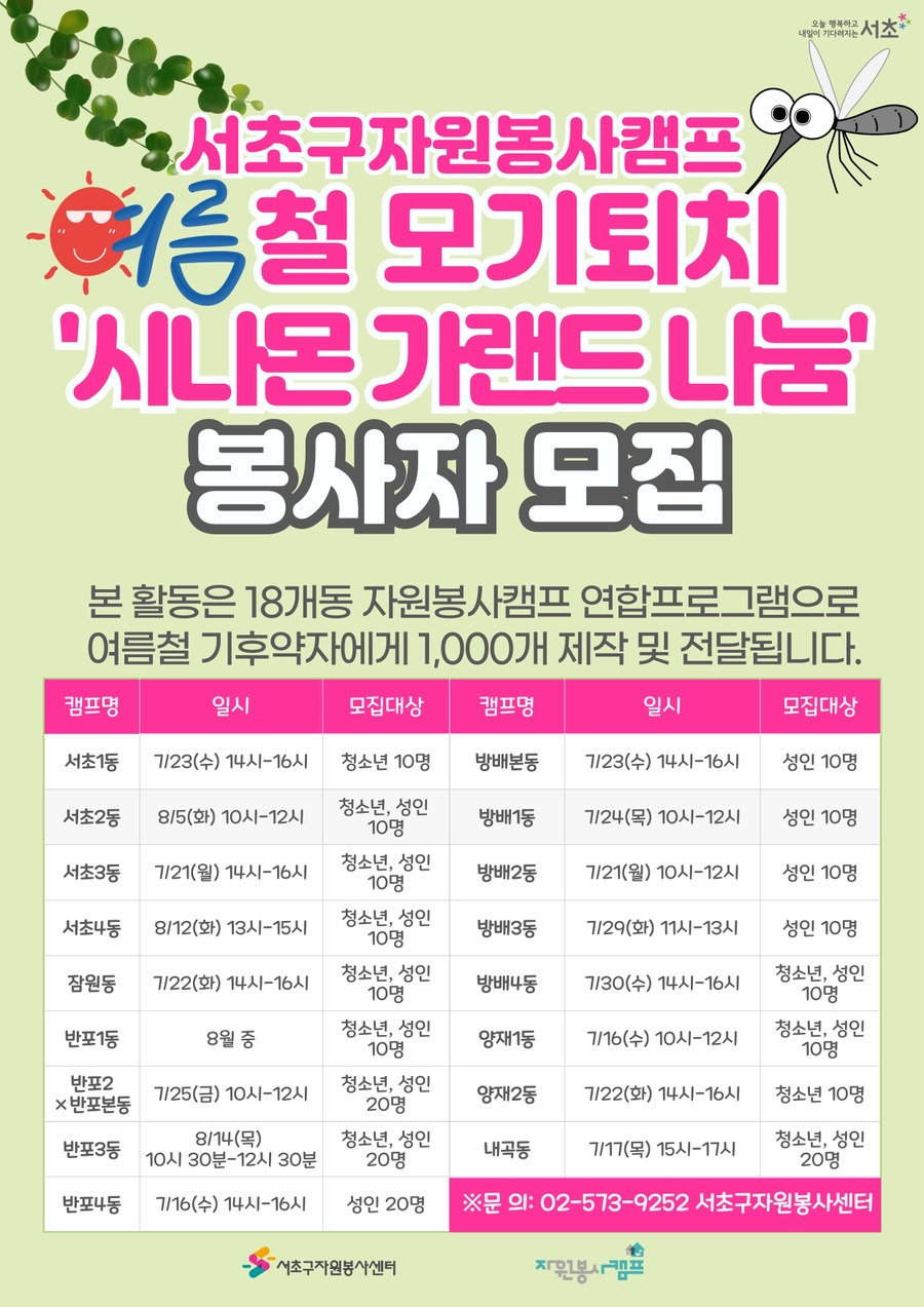 이번 '시나몬 가랜드 나눔' 활동을 통해 서초구 곳곳에 따뜻한 나눔의 손길이 닿고, 모두가 모기 걱정 없이 행복한 여름을 보내기를 기대합니다.