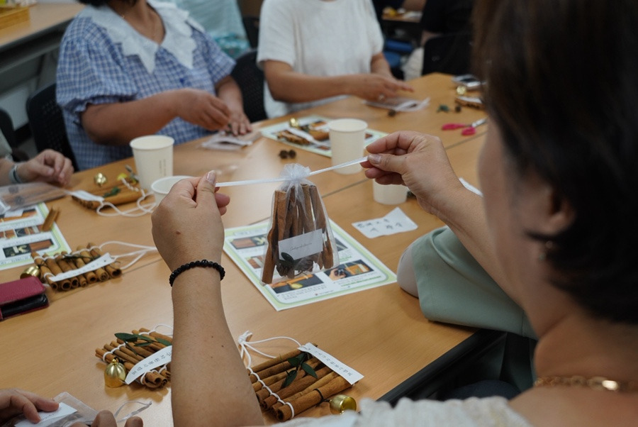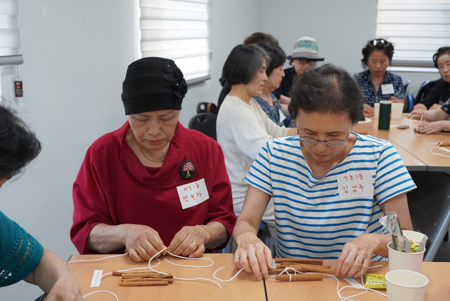 서초구자원봉사센터 2층 다목적실에서는 '여름철 모기퇴치 시나몬 가랜드 만들기' 시연회가 열렸습니다.