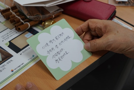 활동이 끝난 후에 봉사자들과 함께, 그리고 활동가들끼리 따로 소감을 나눕니다.