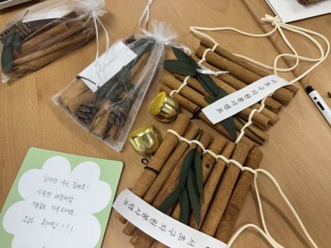 시나몬 스틱이 예쁘게 매달린 가랜드와 향긋한 방향제를 손에 든 임직원분들의 얼굴에는 뿌듯함이 가득했습니다.