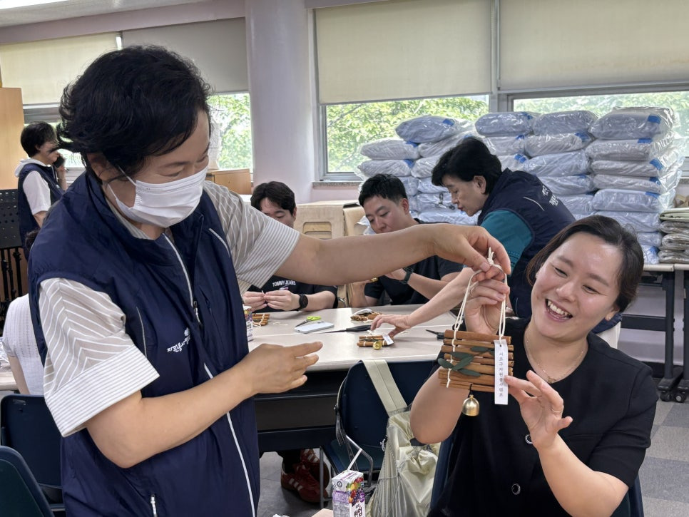 "매년 여름나기 프로그램을 하고 있는데, 이번에는 특별히 모기 가랜드 같은 용품과 여름을 시원하게 날 수 있는 용품들로 구성했어요. 이렇게 나눠줌으로써 지역사회 주민과 하나 되는 과정이 되는 것 같아요."