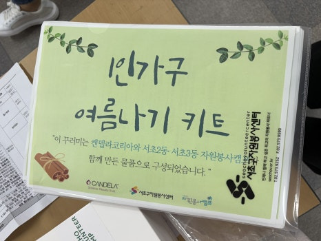 켄델라코리아 박현수 대표님과 서초2동 이남숙 동장님의 따뜻한 인사말과 함께 시작된 '1인가구 여름나기 키트 만들기' 활동에는