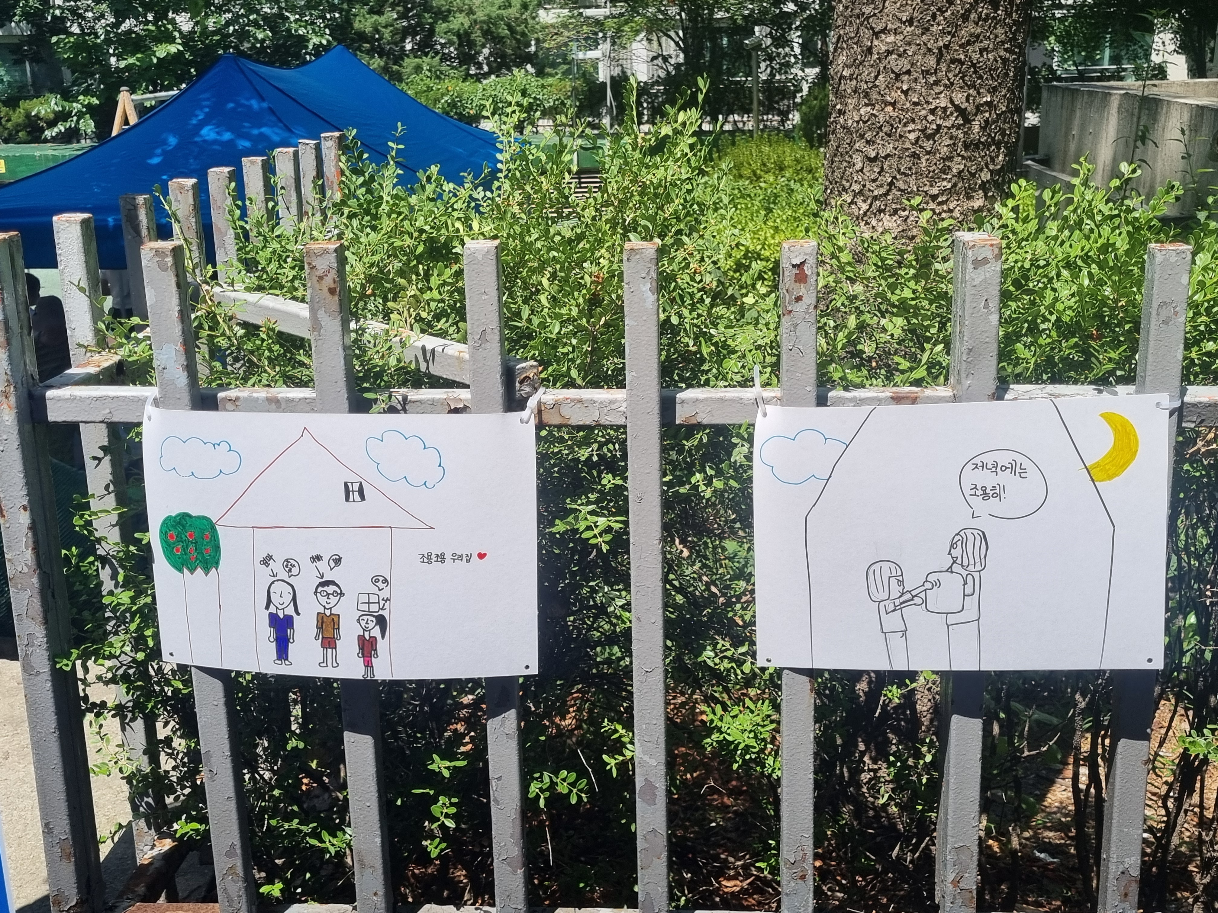 어린 친구들이 열심히 그린 그림들을 보며 아파트 주민분들이 층간소음 예방에 힘써주었으면 좋겠네요!
