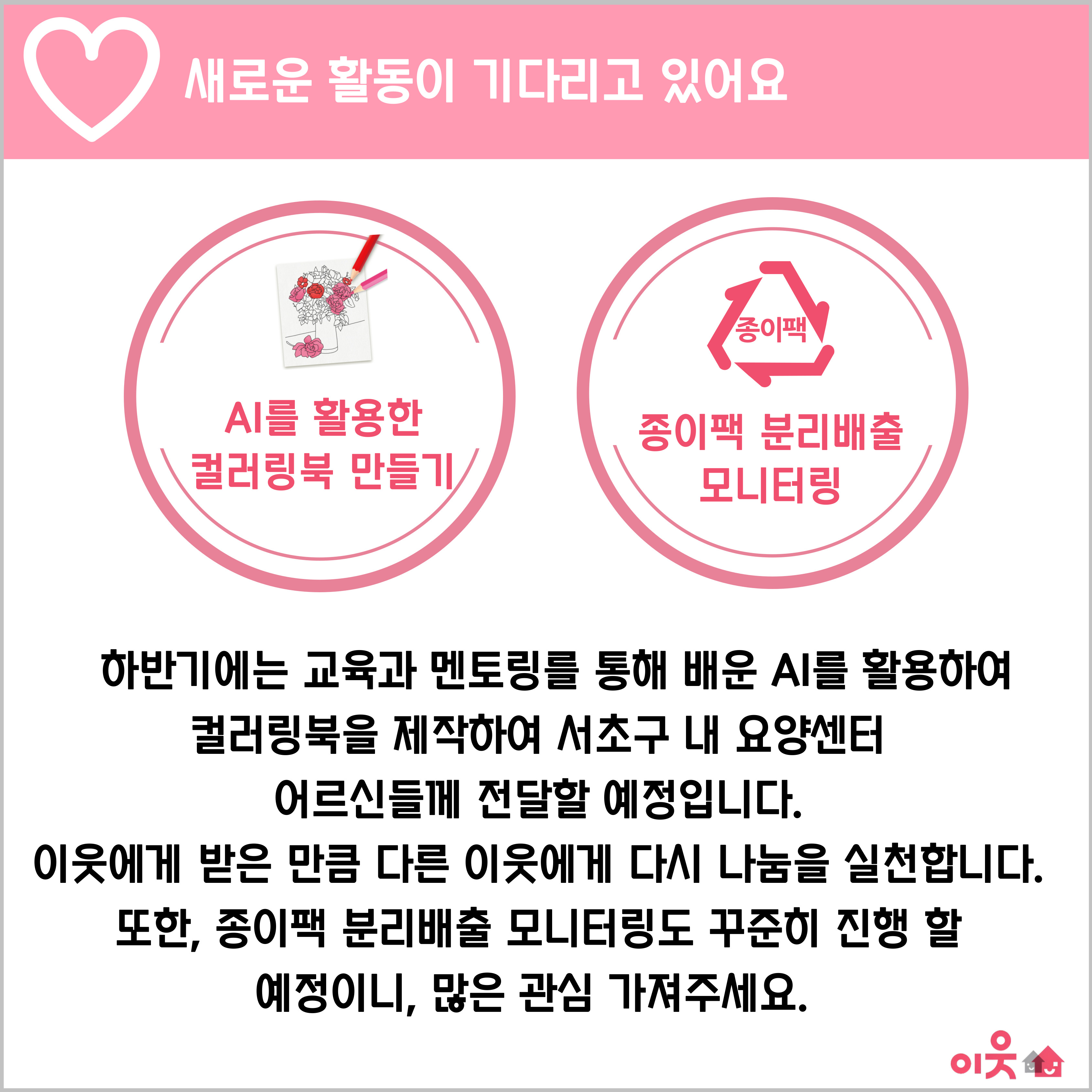서초구 내 아파트와 공동주택 주민이라면 누구나 함께하실 수 있답니다.