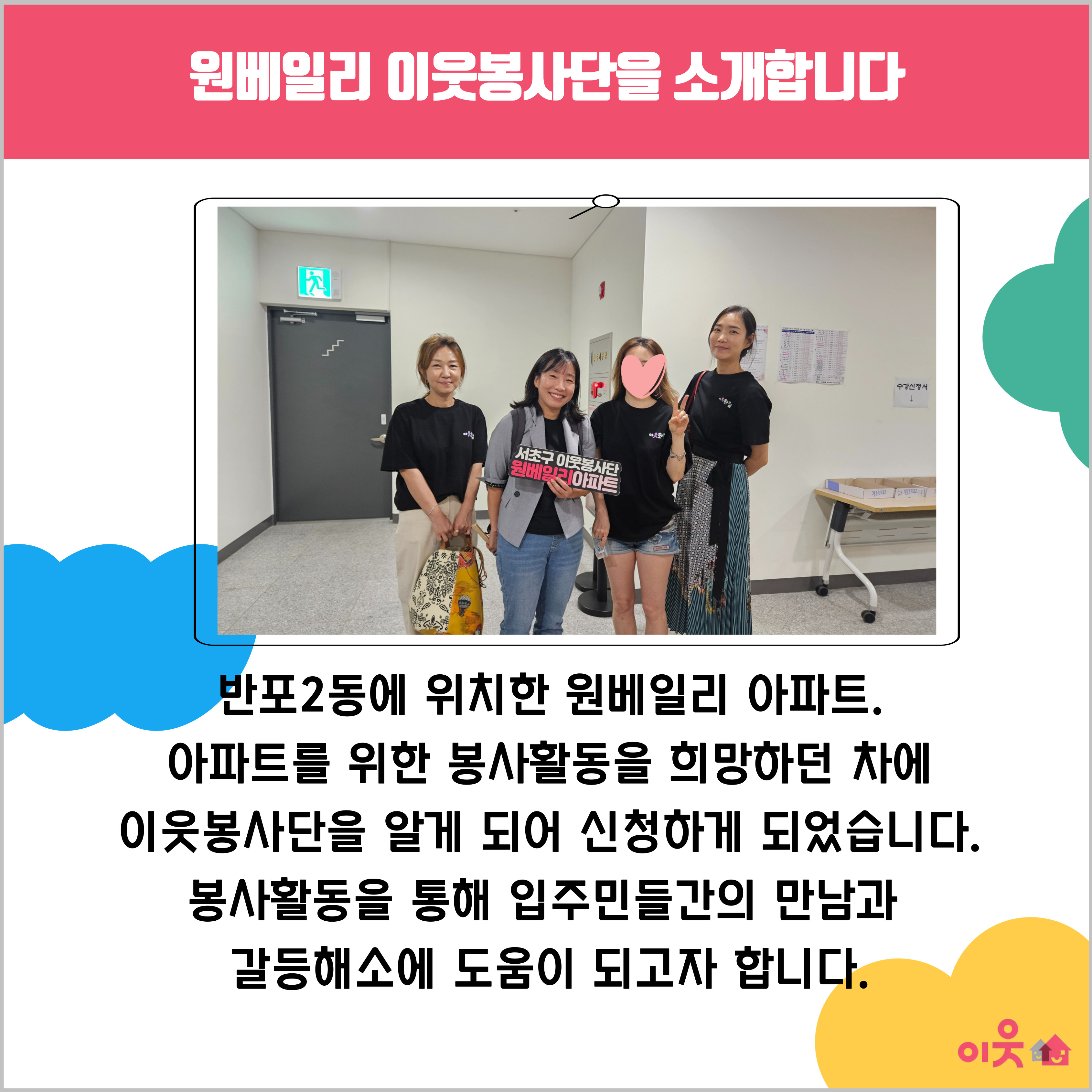이웃봉사단 중 첫 번째, 원베일리 봉사단을 소개합니다.