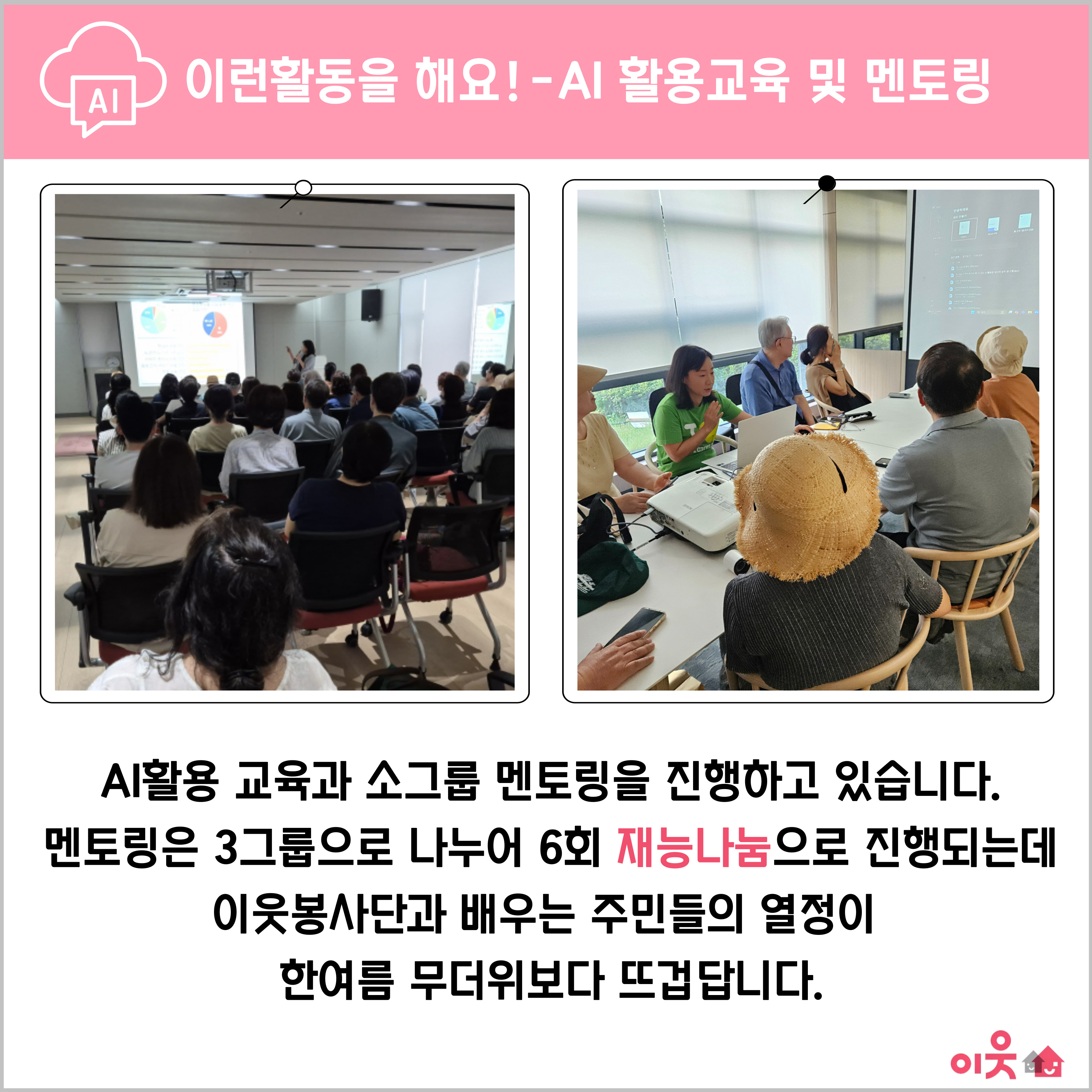 또, AI활용 교육과 소그룹 멘토링을 진행하고 있습니다.