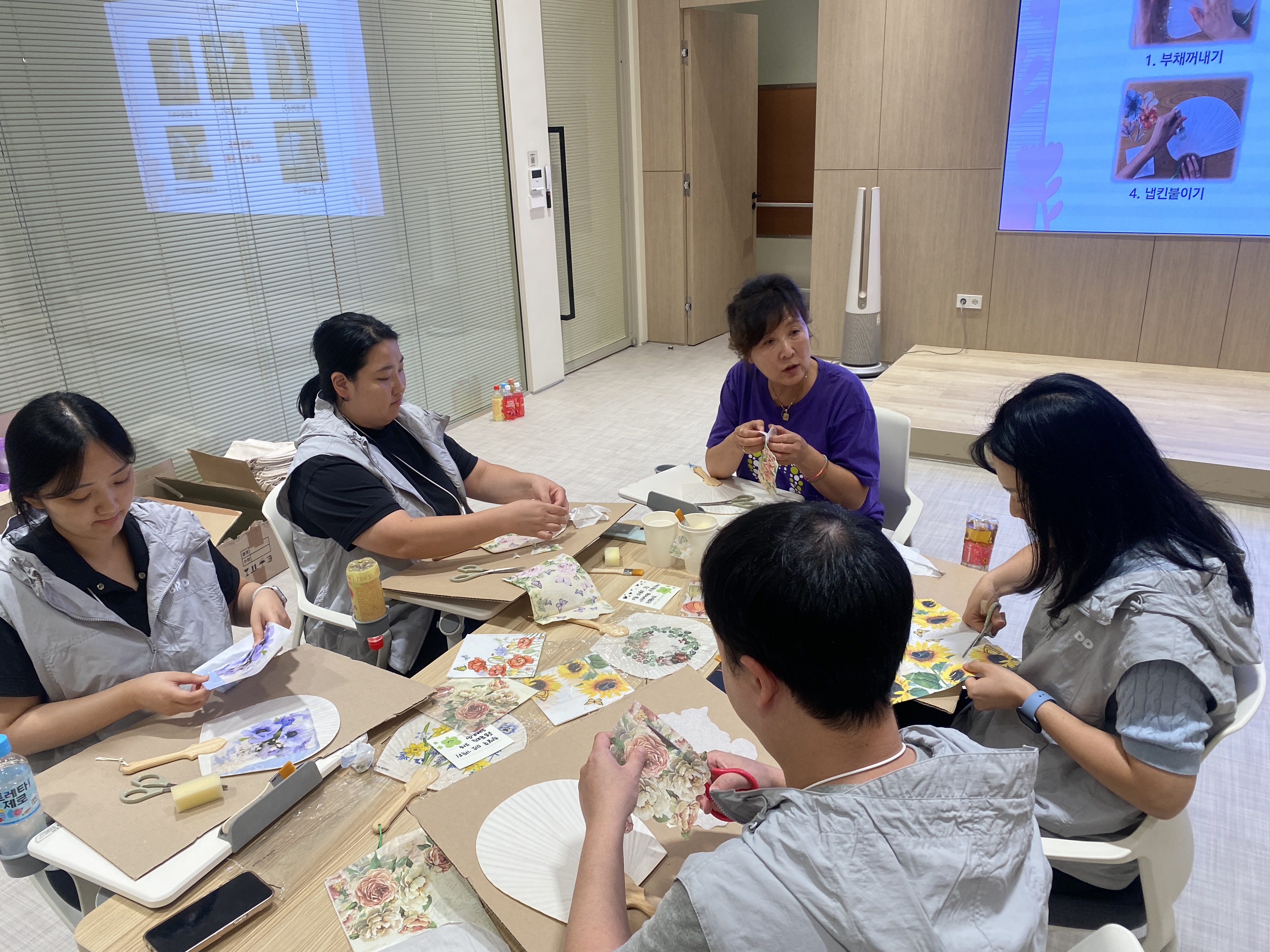 이번 활동은 임직원들은 2시간 동안 정성을 담아 냅킨아트를 통해 만드는 '부채'와